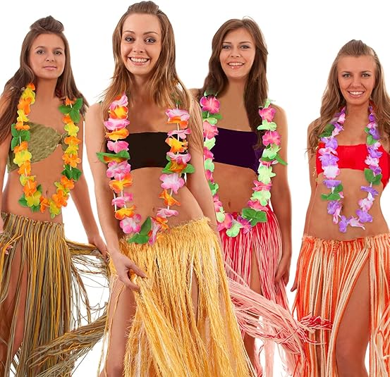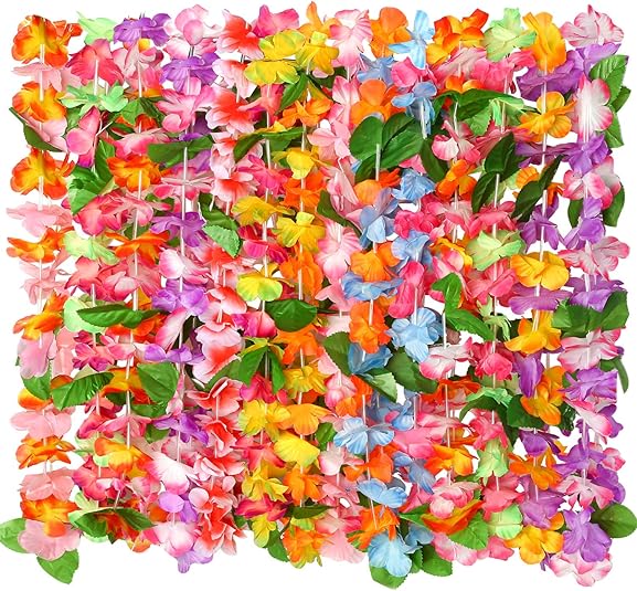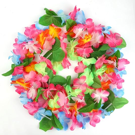 14 Pieces Hawaiian Leis Necklaces Colorful Hawaiian Flower Leis Necklaces for Luau Party Decorations Beach Party Supplies