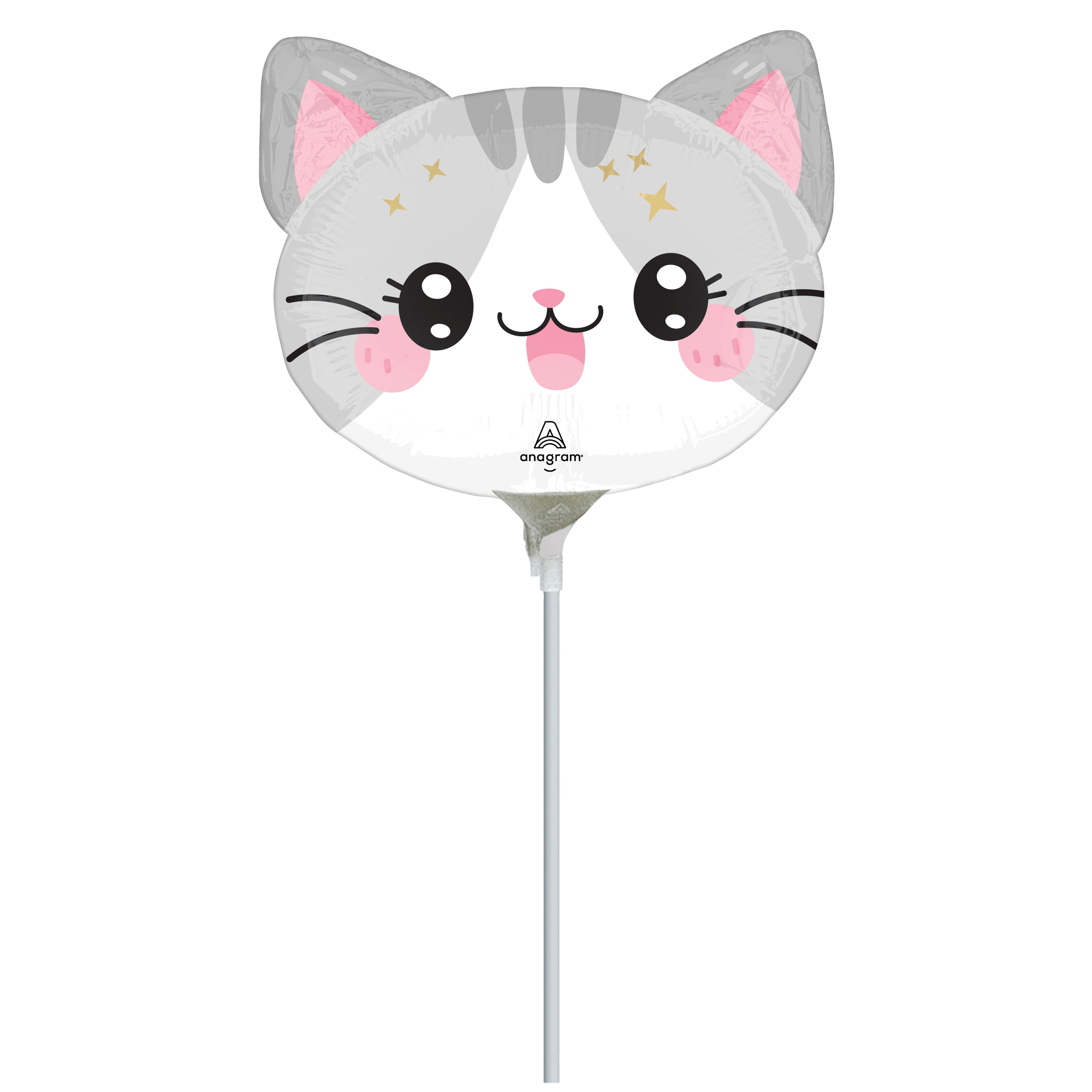 14" Pink & White Kawaii Kitty Foil Stick Balloon