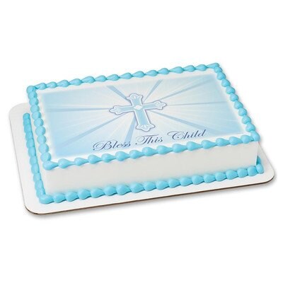 1/4 Sheet - Bless this Child in Blue - Edible Cake/Cupcake Party Topper!!!