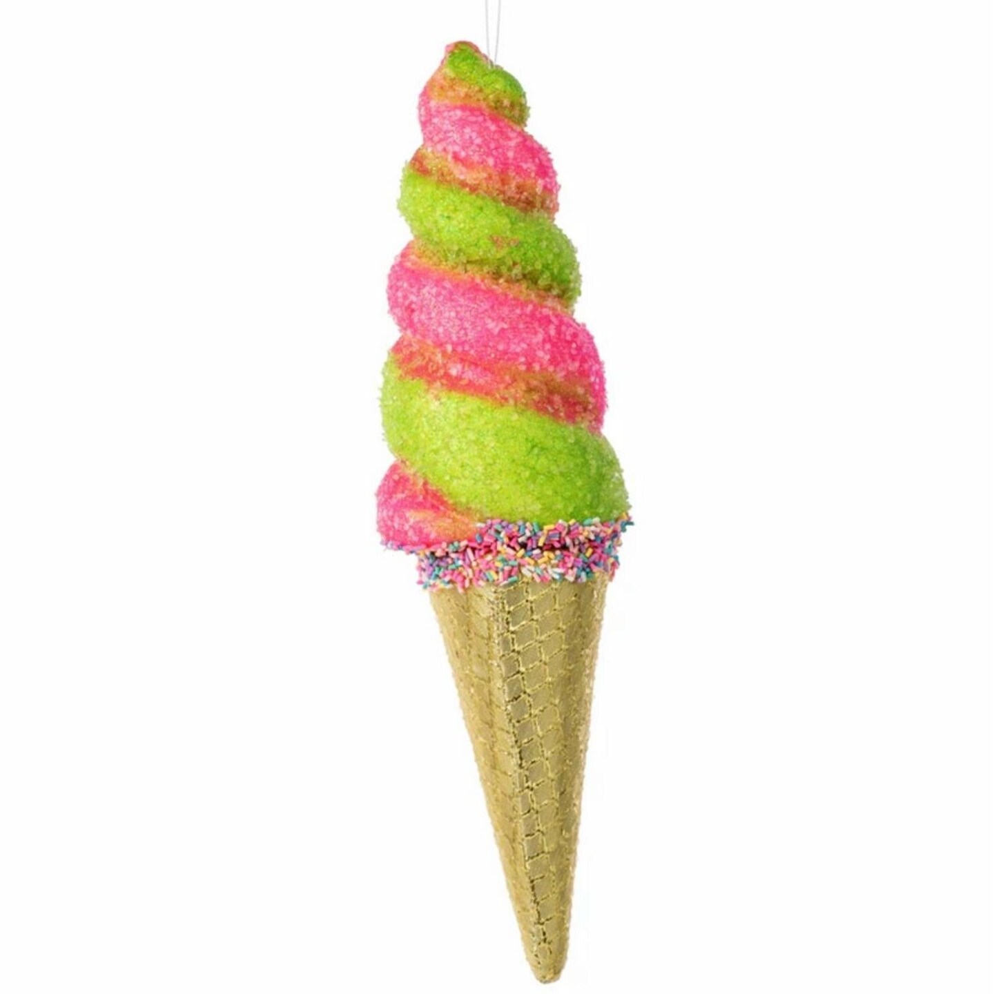 14" Swirl Ice Cream Cone Ornament: Pink/Lime Green