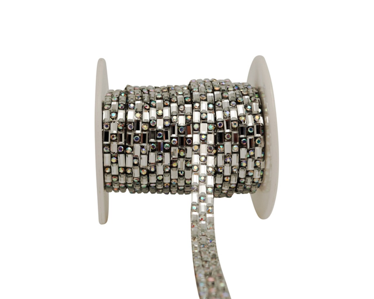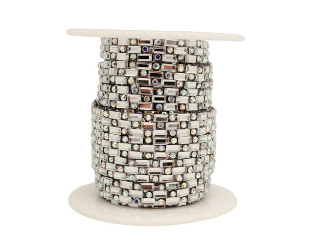1/4" x 5 Yards Silver / AB Crystal Cluster Iron On Rhinestone Trim Pack of 1