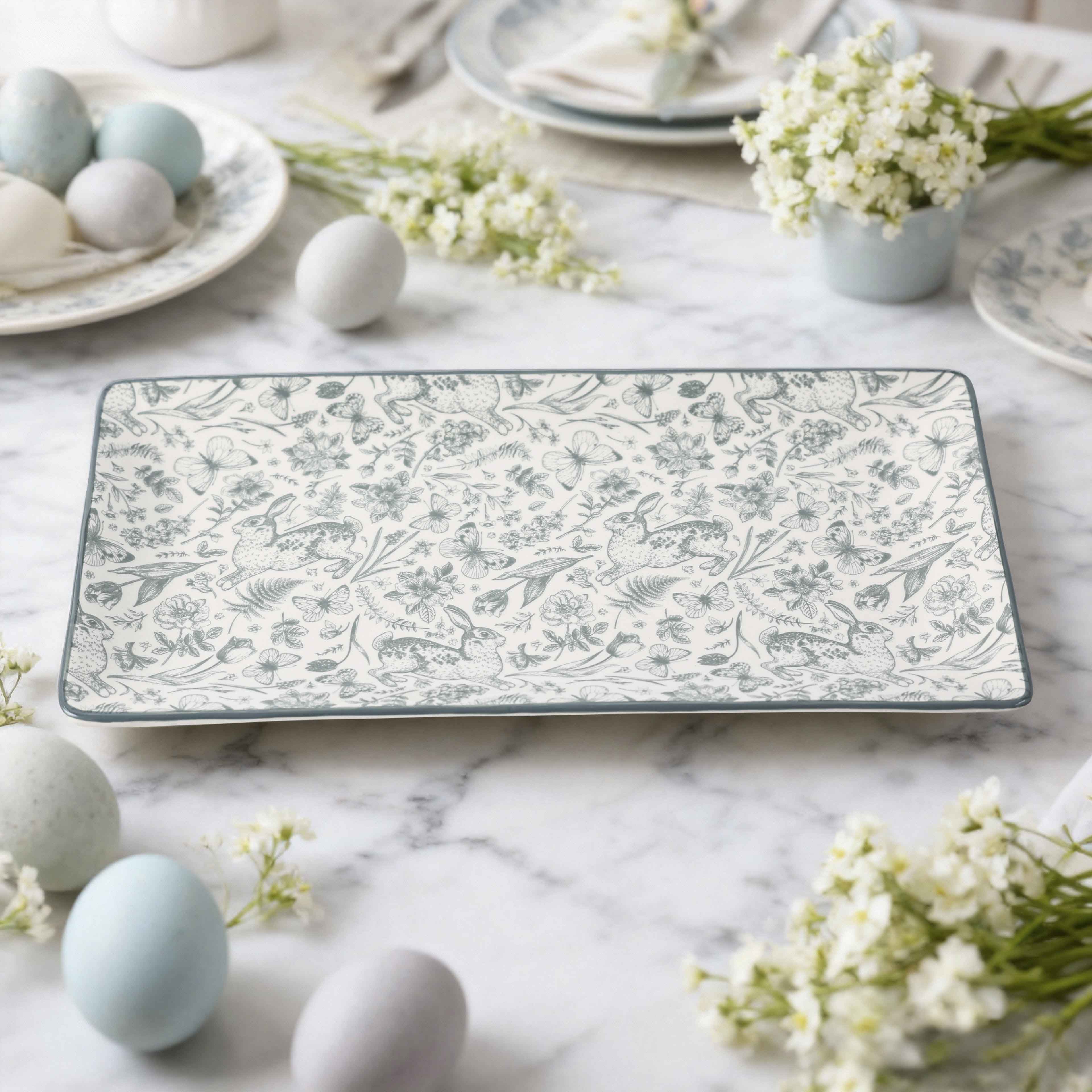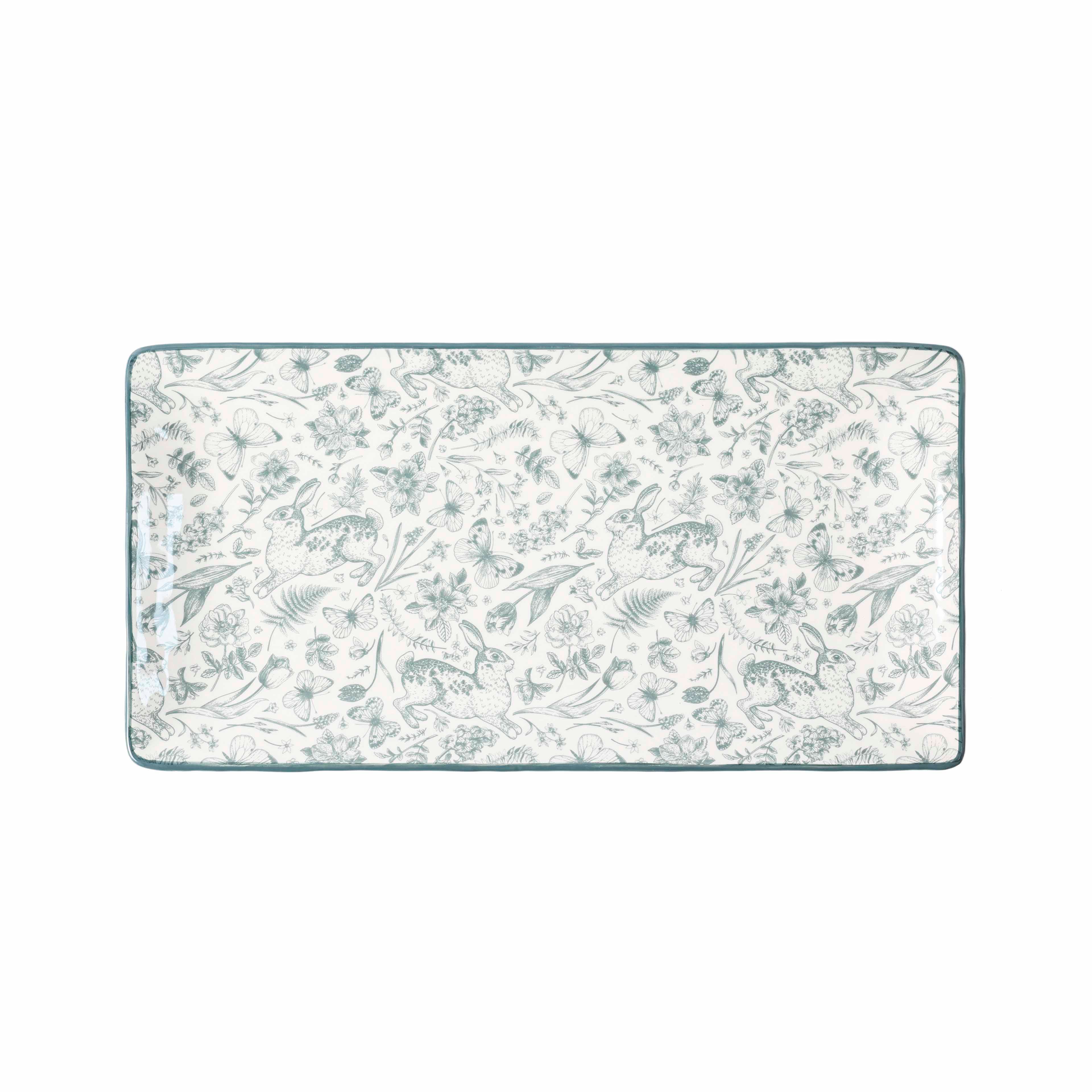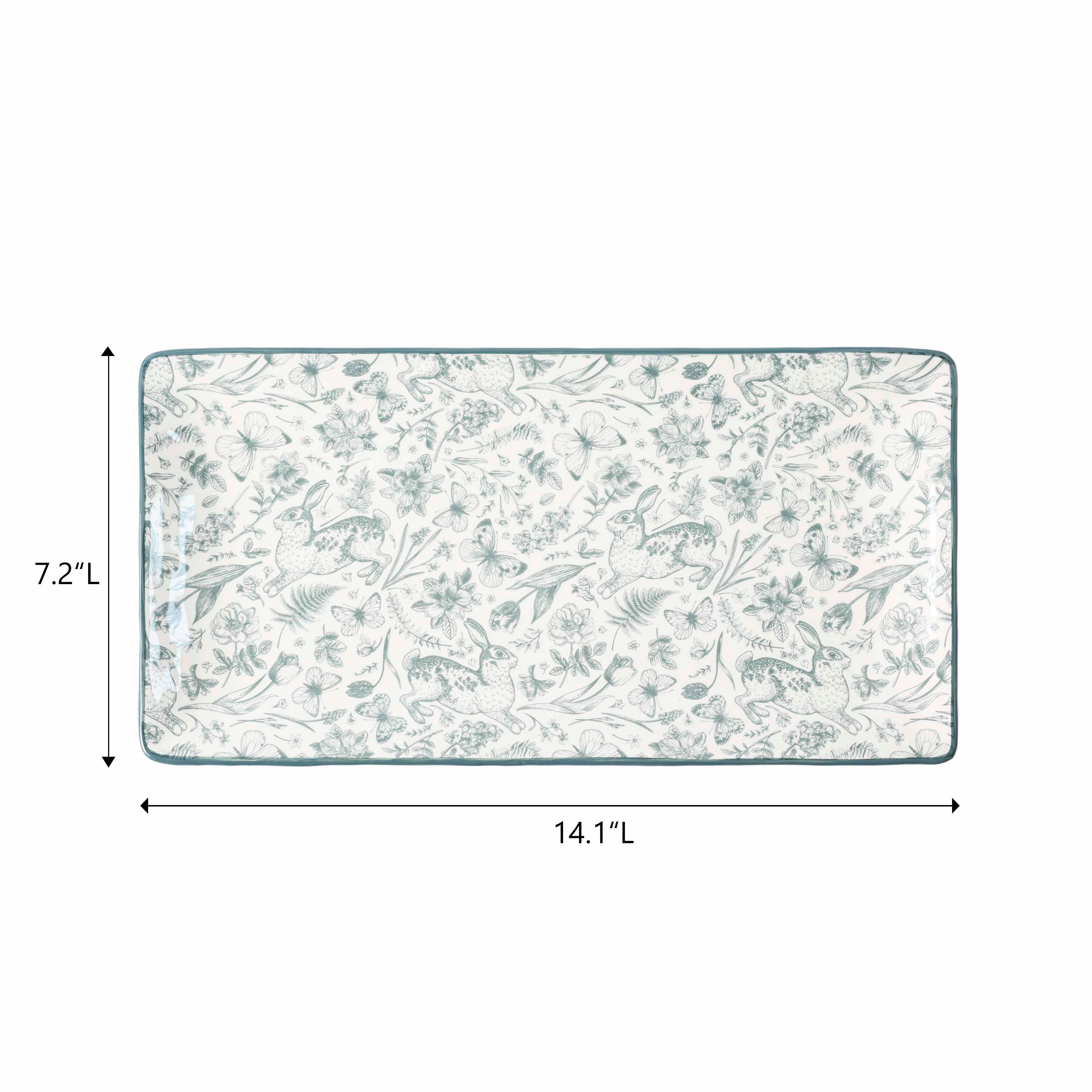 14" x 7.25" Green Bunny Rectangle Ceramic Plate by Ashland®