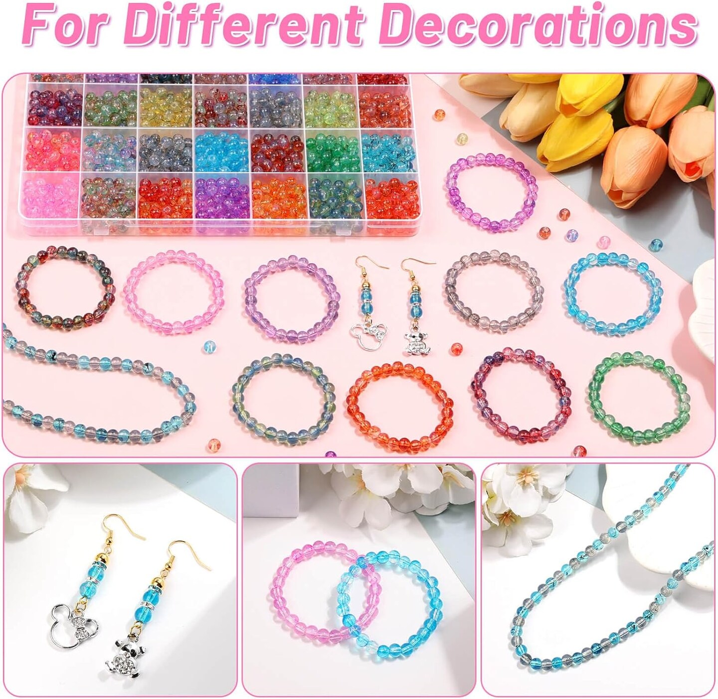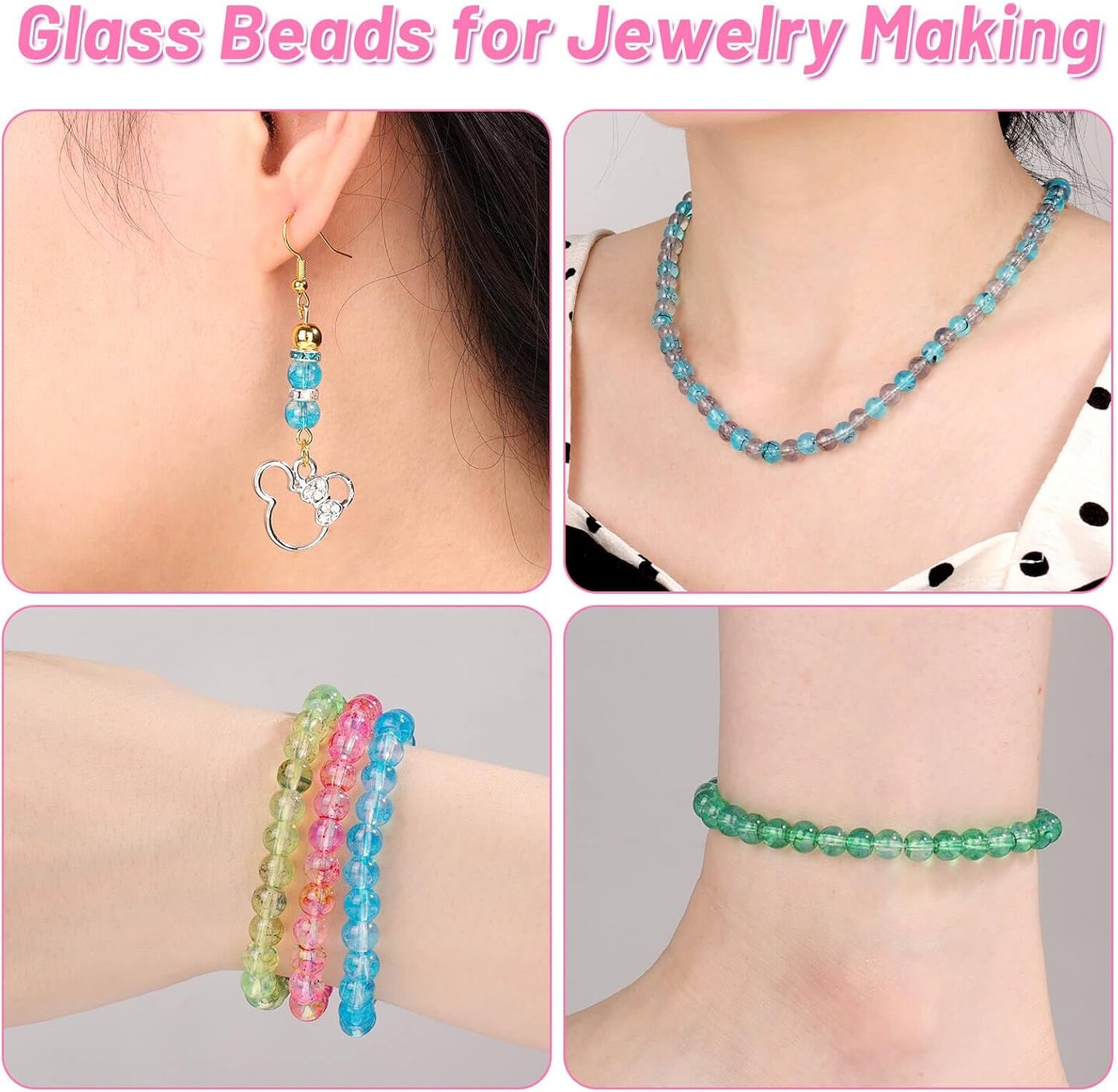 1400 Pieces 6mm Round Glass Beads for Bracelets (Ink Patterns Color)