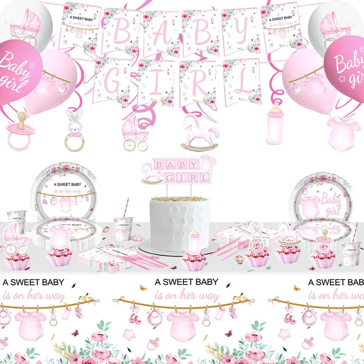141Pcs Floral Baby Girl Shower Decorations