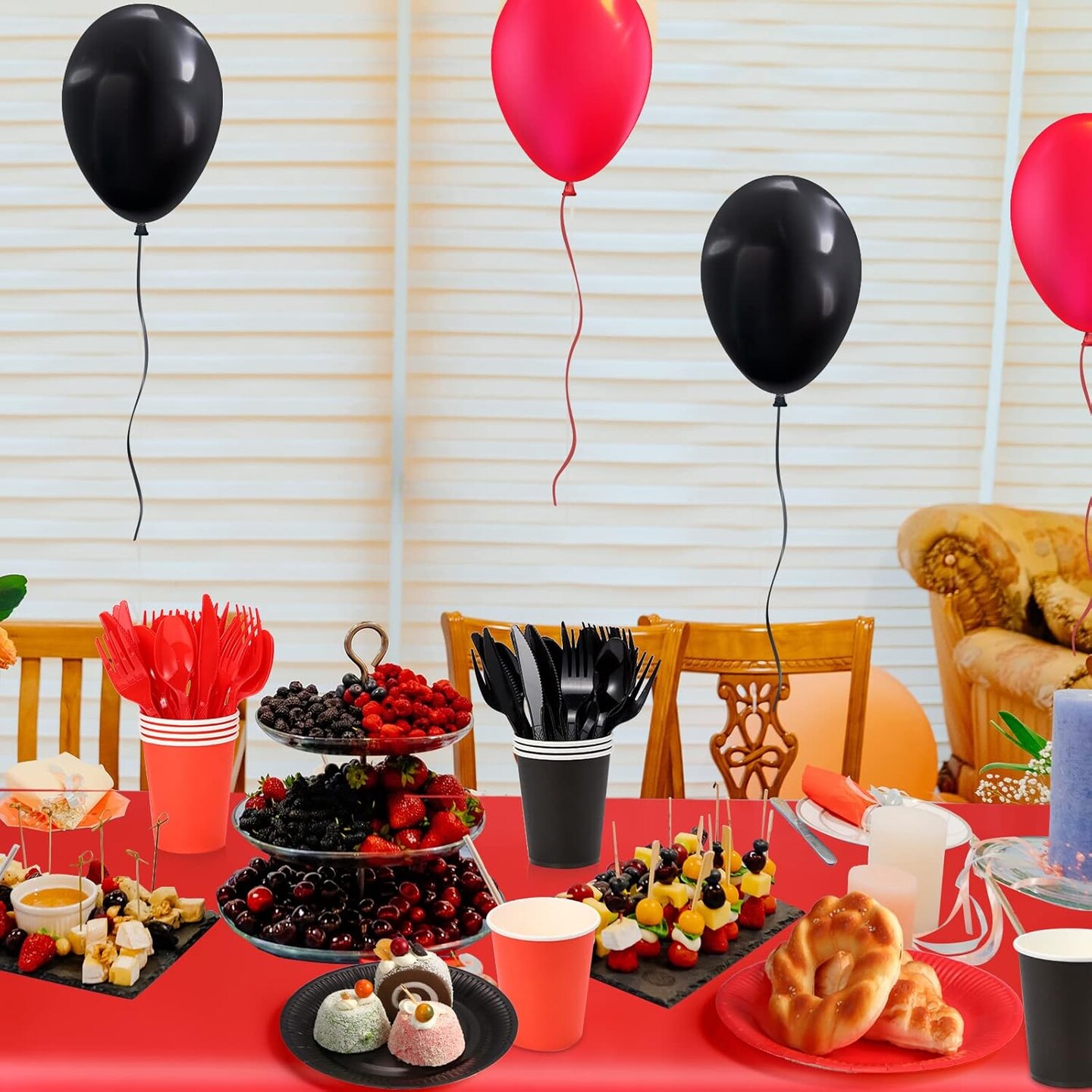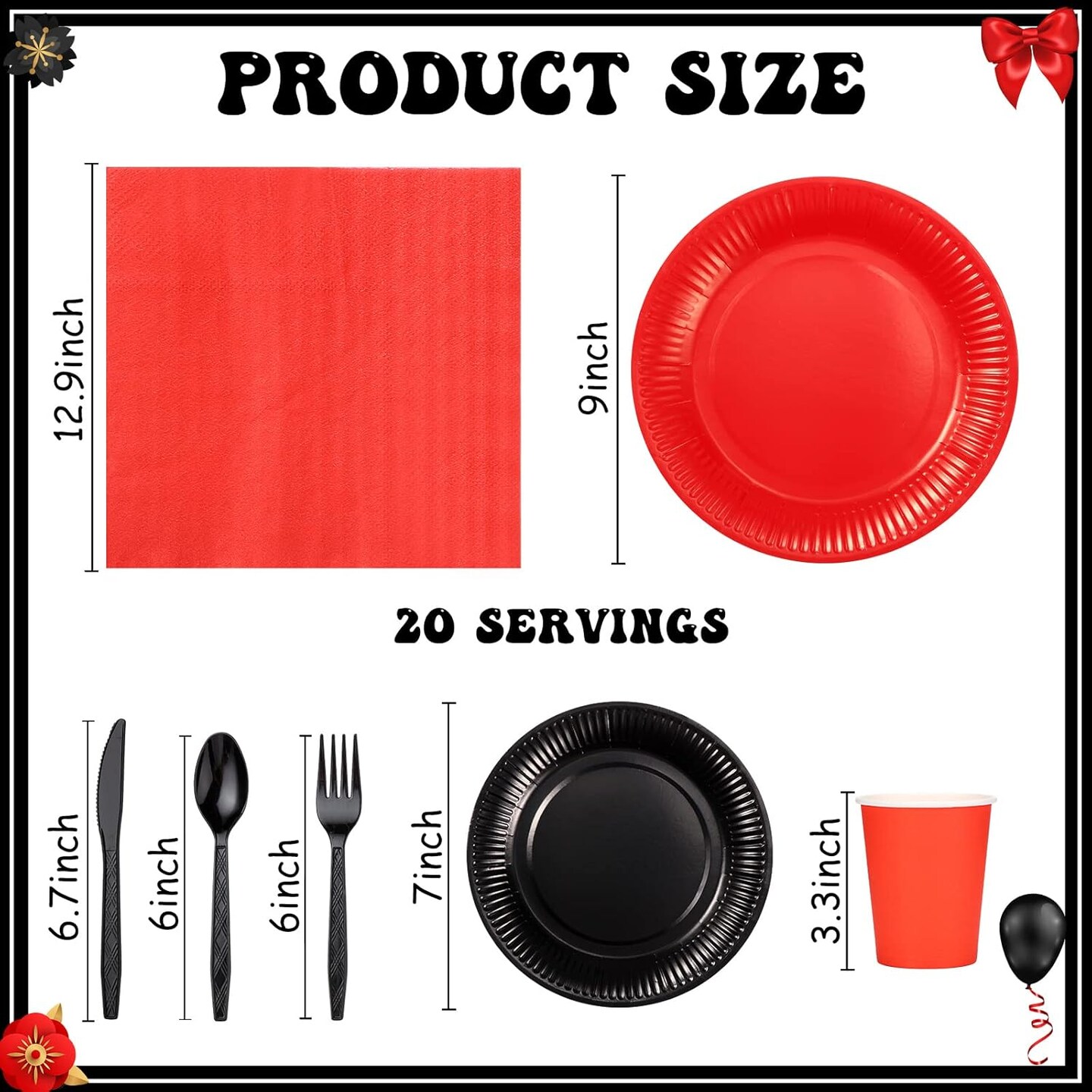 142 Pcs Red and Black Paper Plates and Napkins Graduation Party Supplies Red and Black Disposable Plastic Tablecloth Knife and Fork Spoon Birthday Wedding Anniversary Tableware Set, Serve 20
