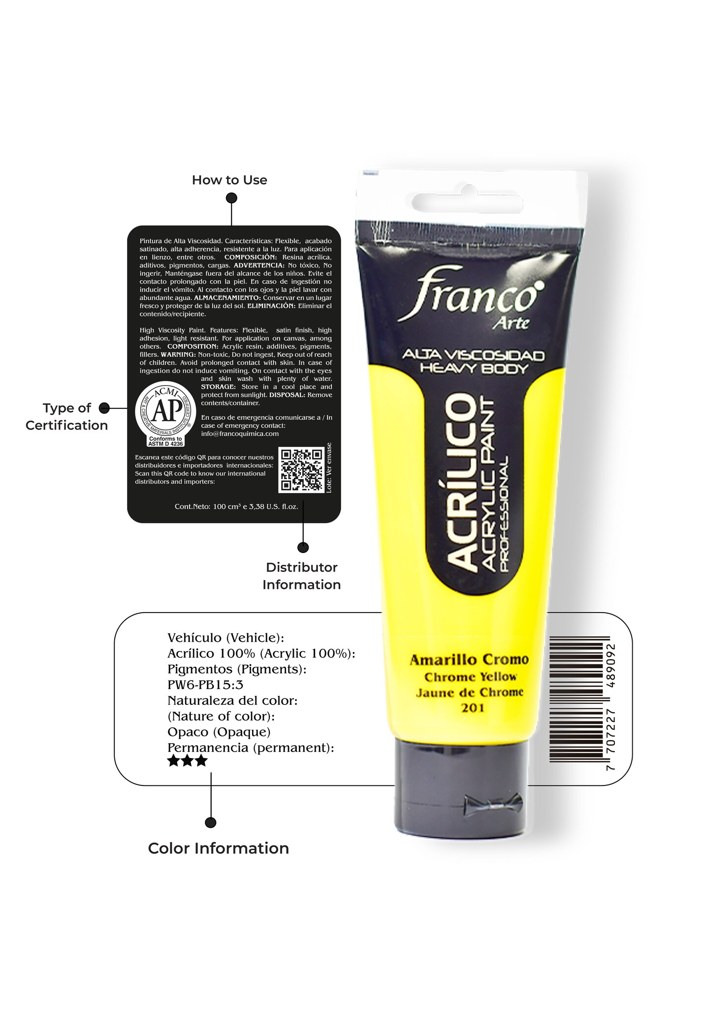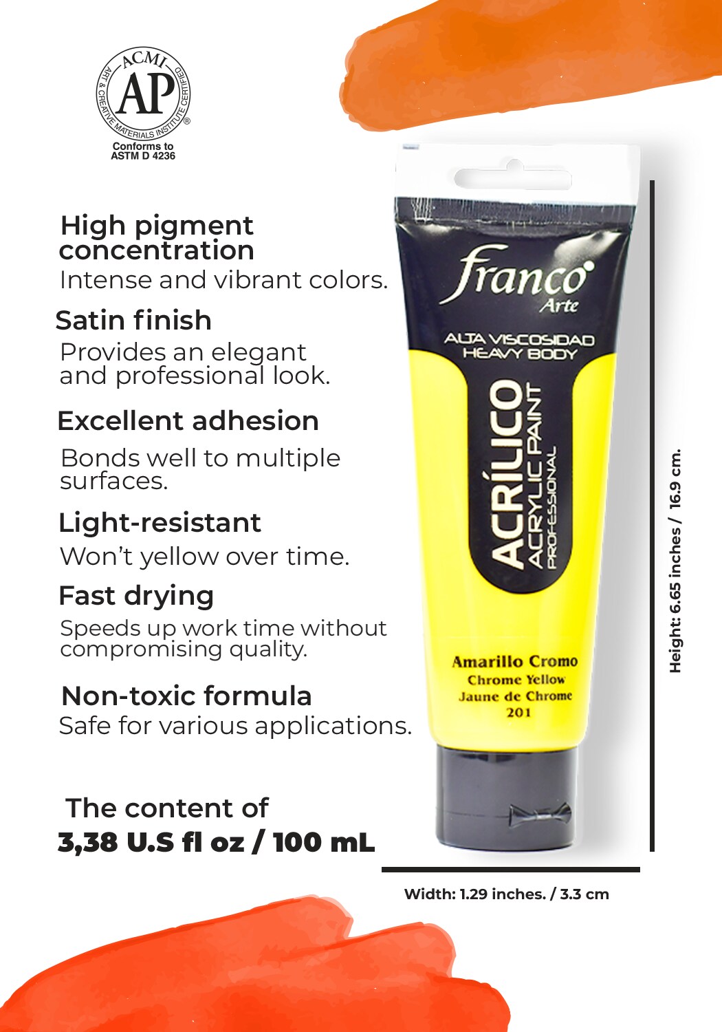 14201-100 Professional Acrylic Paint 3,38 U.S fl oz / Chrome Yellow Hue