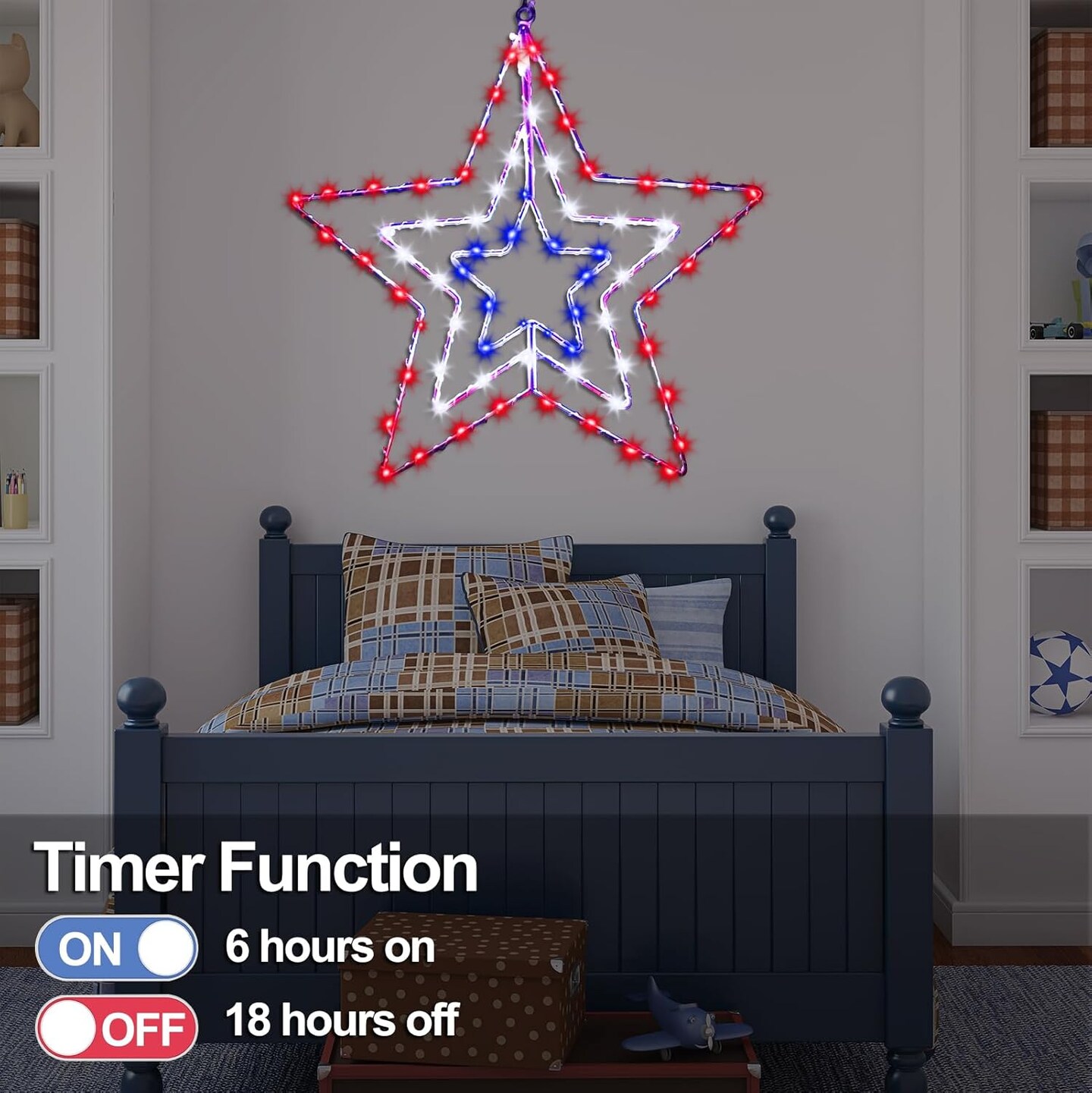 14.2In 4th of July Patriotic Star Lights Decorations, Red White and Blue