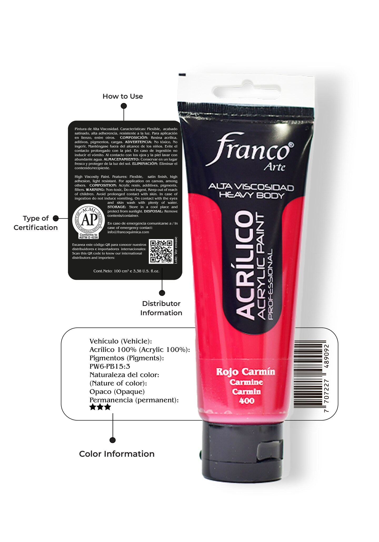 14400-100 Professional Acrylic Paint 3,38 U.S fl oz / Carmine / Heavy Body