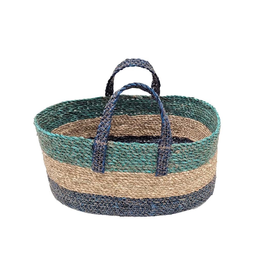 14.5" Blue Stripes Seagrass Basket by Ashland®