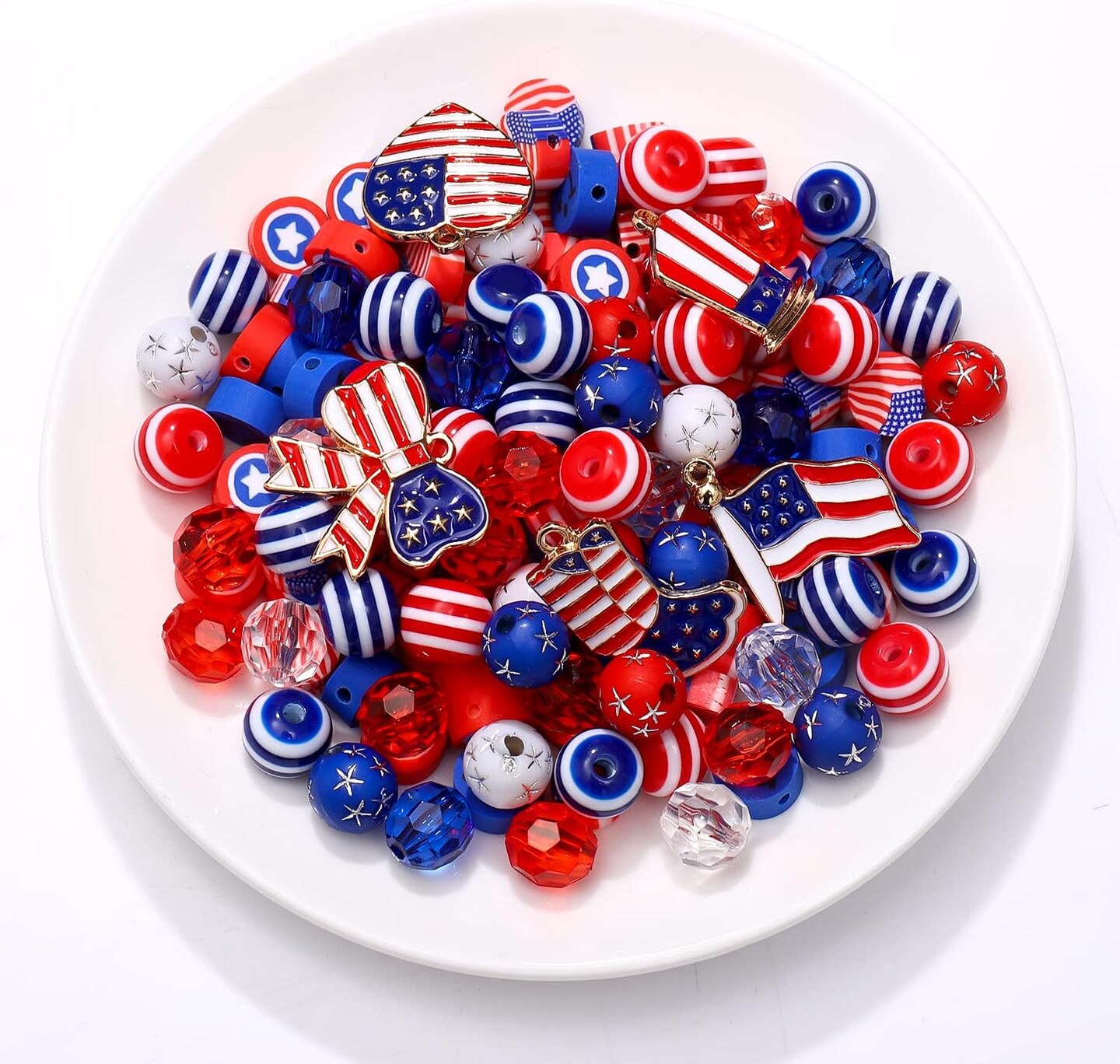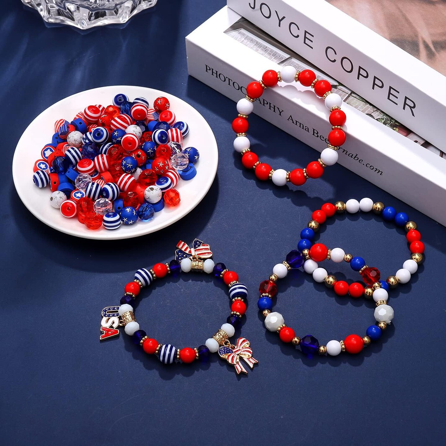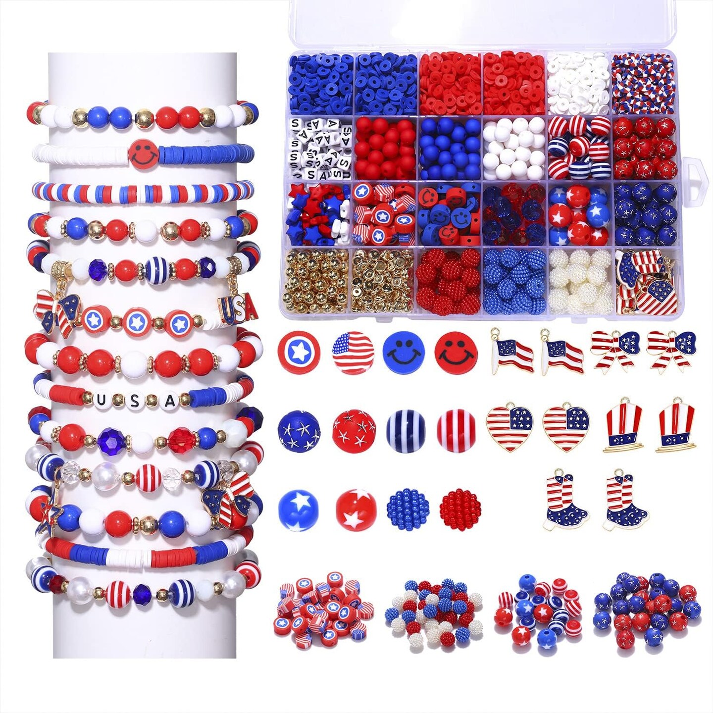 1461-Piece 4th of July Patriotic Beads Kit – Red, White & Blue Heishi Stars, USA Letter Beads, and Flag, Heart & Hat Pendants for DIY Bracelets & Jewelry Making