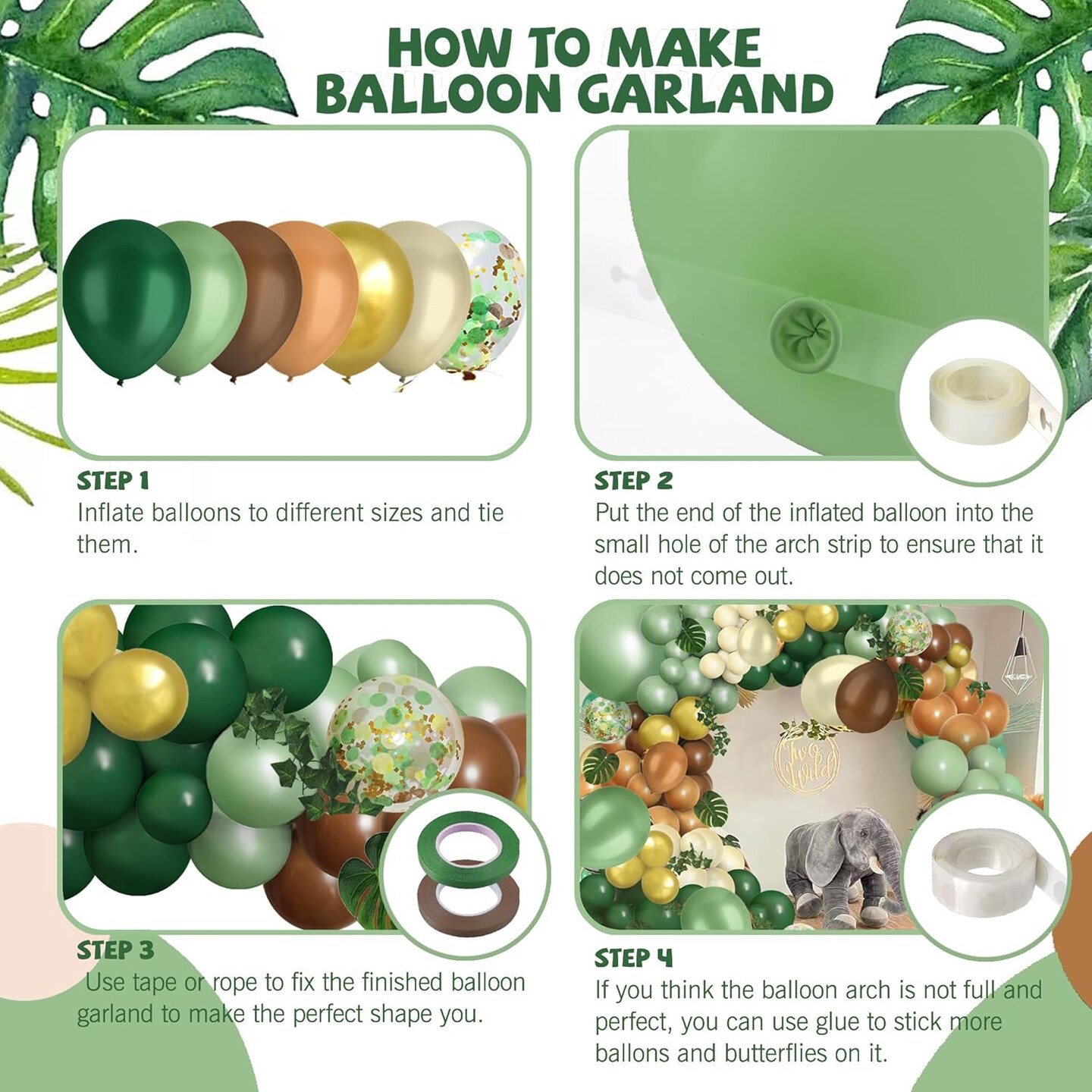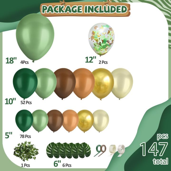 148 pcs Safari Balloon Arch Kit, Sage Green Brown Jungle Wild One Balloon Garland with Animal Print Balloons Palm Leaves for Woodland Tropical Birthday Party Supplies Shower Decorations