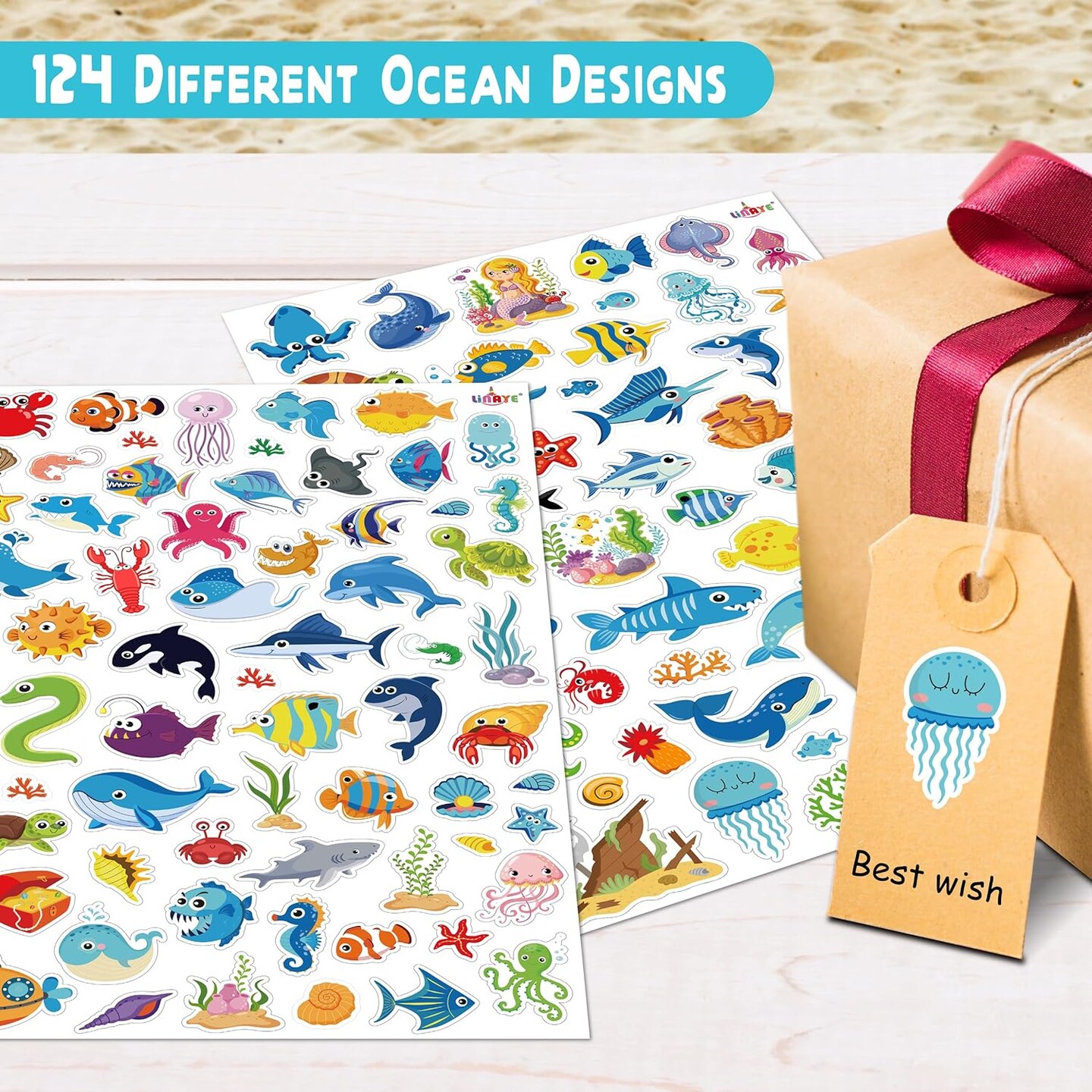 1480PCS Ocean Stickers for Kids, 24 Sheets, Vinyl, Waterproof Under The Sea Fish Animal Stickers