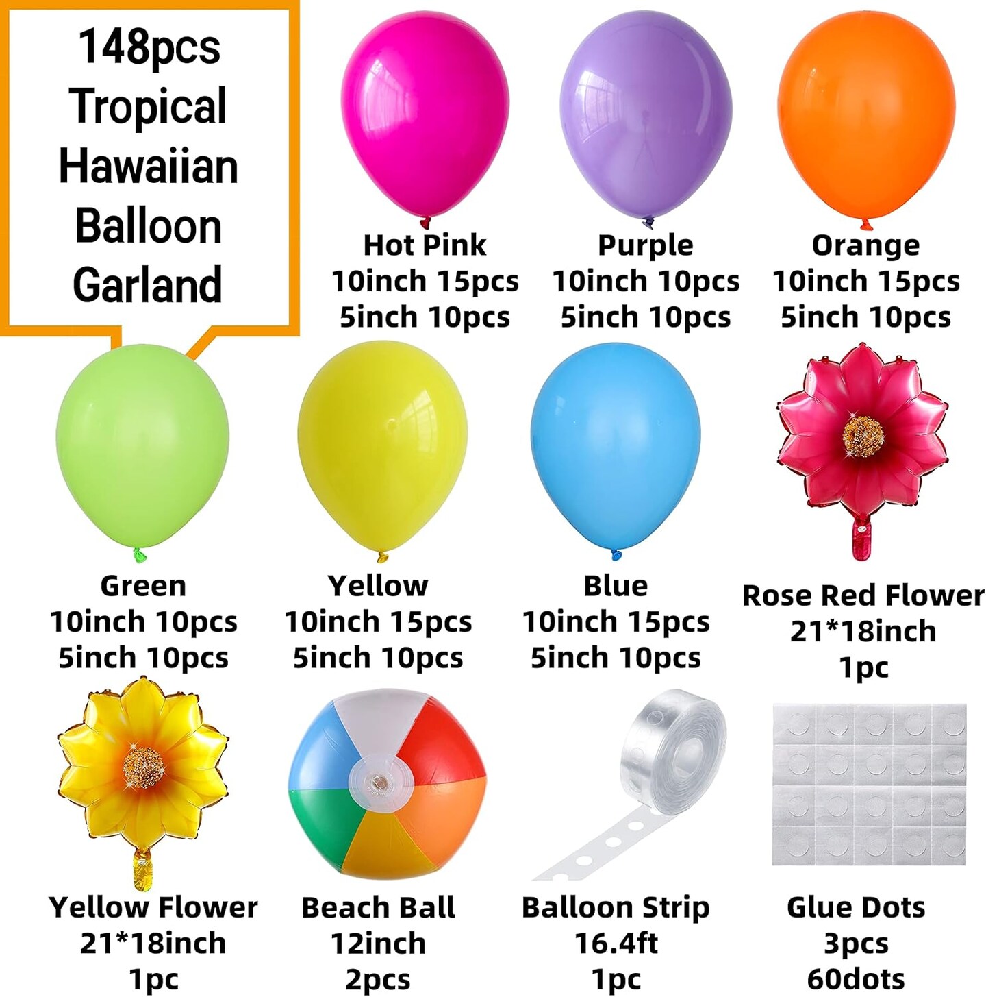 148pcs Summer Party Rainbow Balloon Garland Arch Kit with Flower Foil Balloons Beach Balls