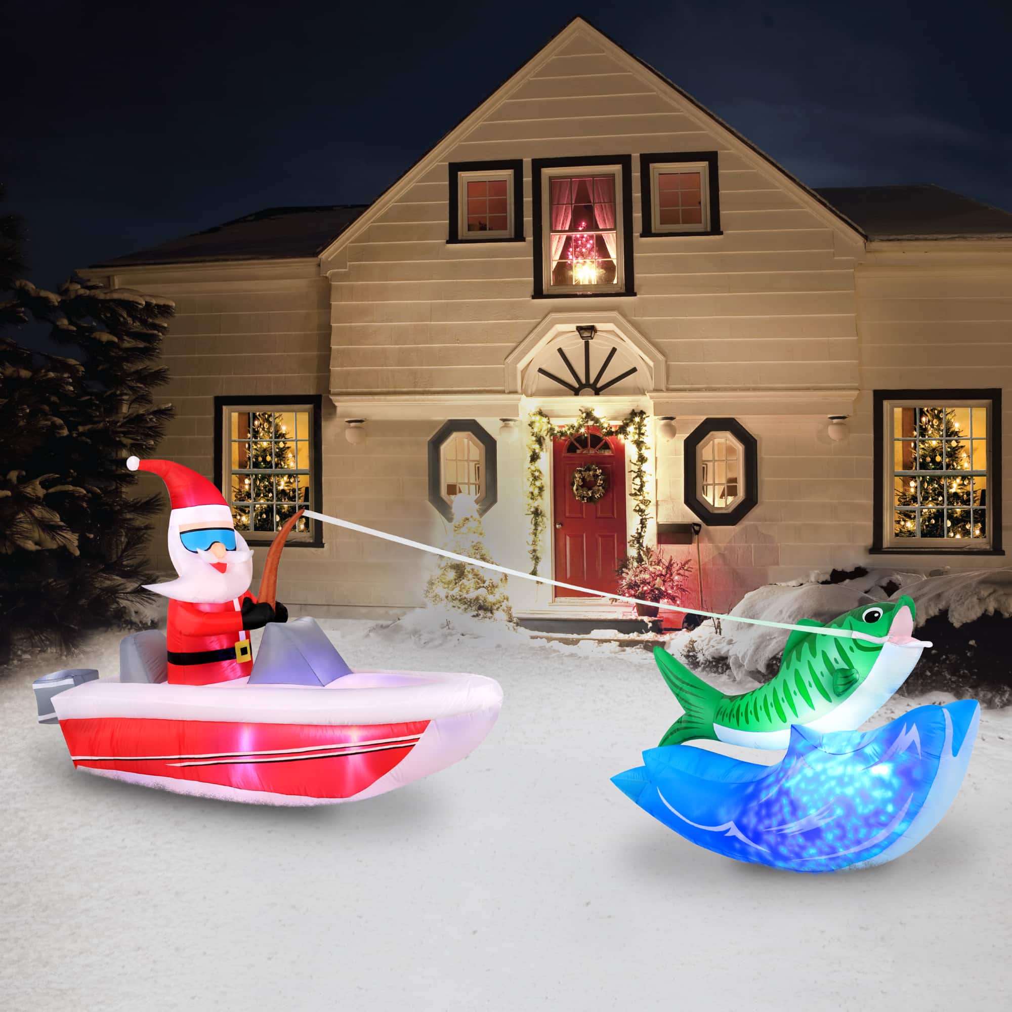 14ft. Inflatable Christmas Boat Fishing Santa with Swirling Lights