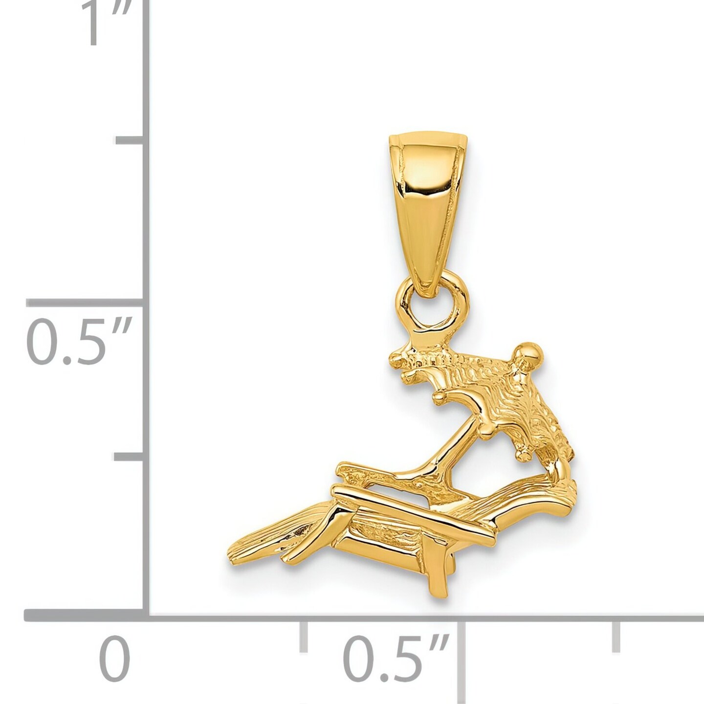 14K Gold 3D Lounge Beach Chair Pendant Charm Jewelry 17 x 14 mm