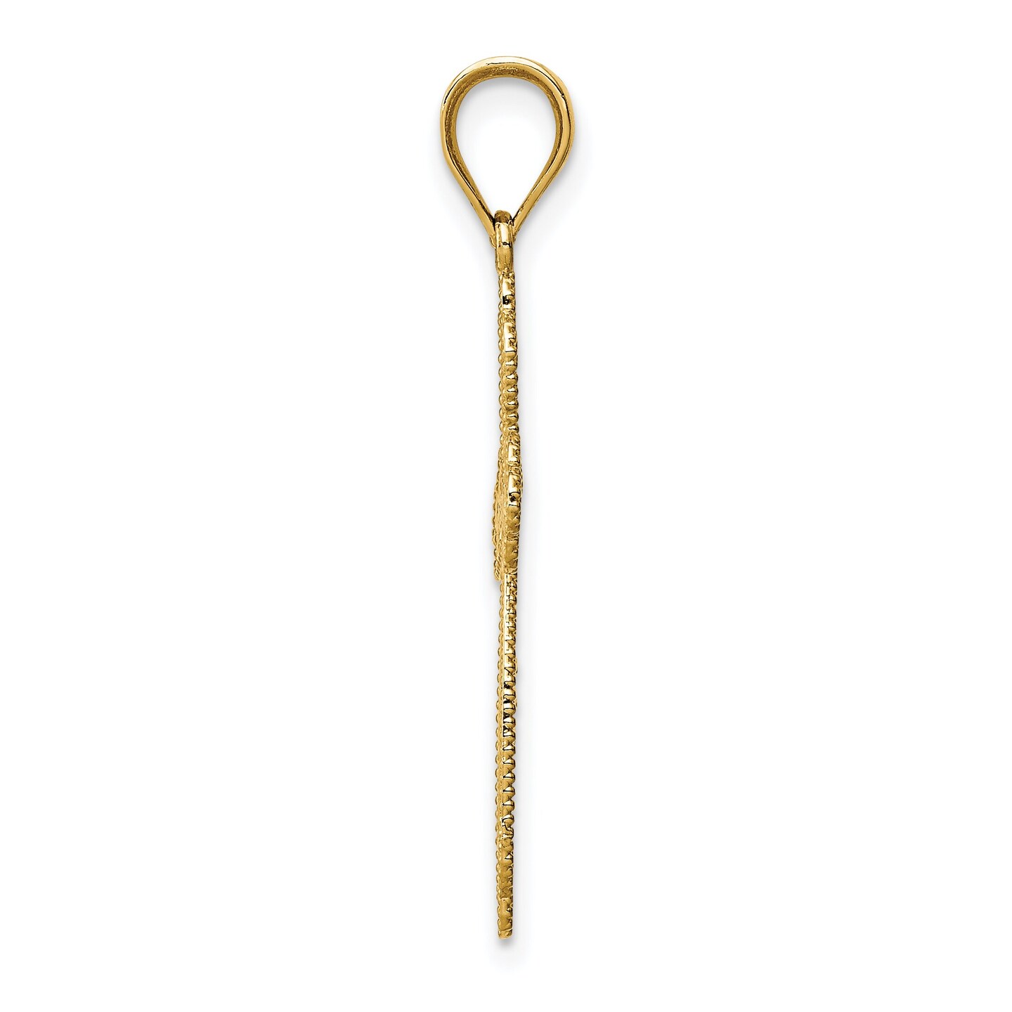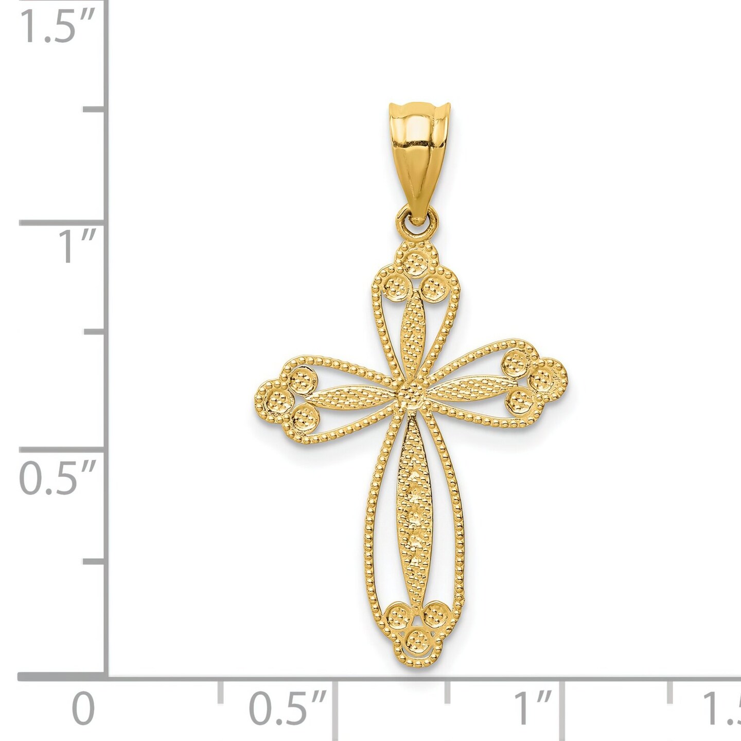 14K Gold Budded Cross Pendant Charm Jewelry 32 x 18 mm