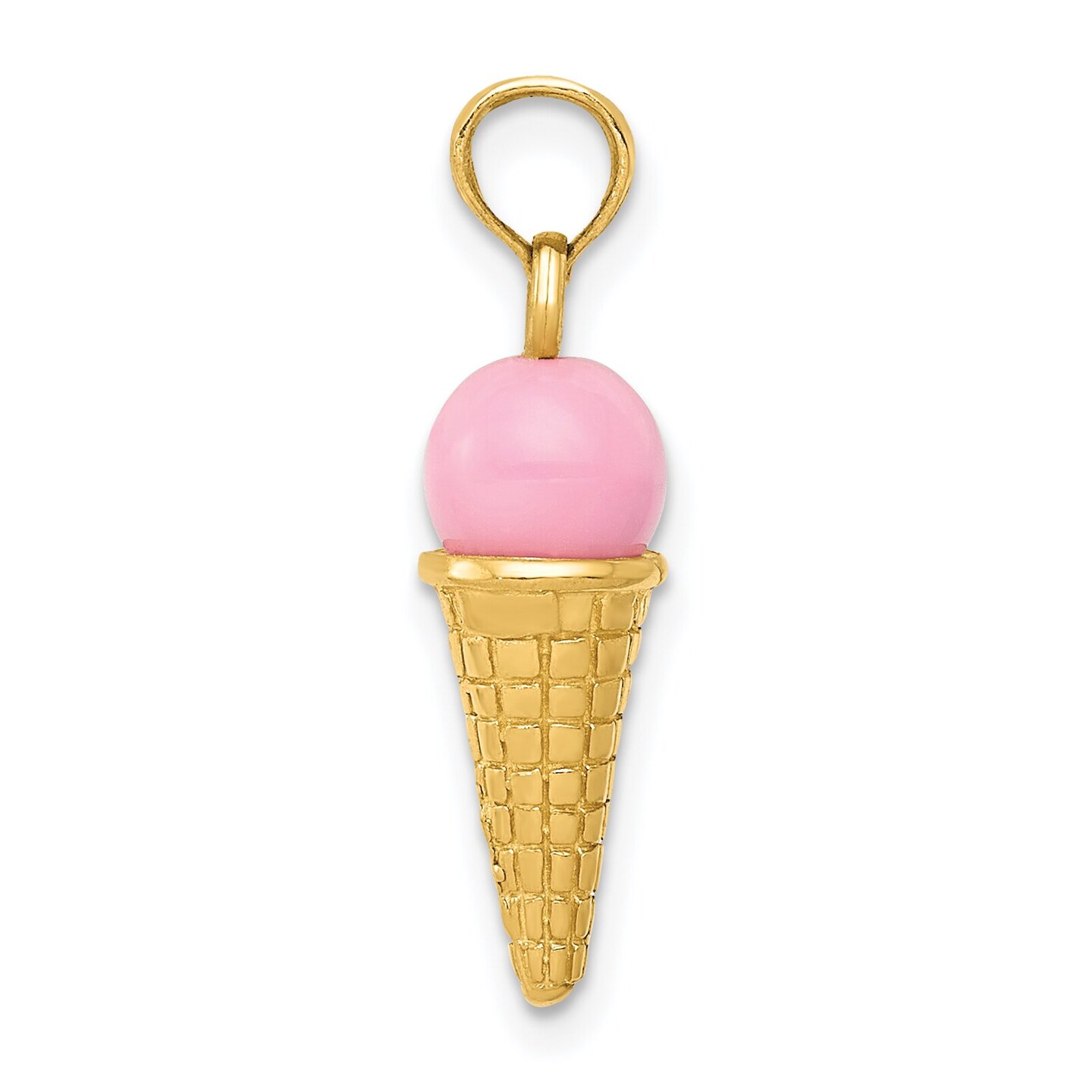 14K Gold Enamel 3D Ice Cream Cone Charm Pendant Jewelry 23mm x 6mm