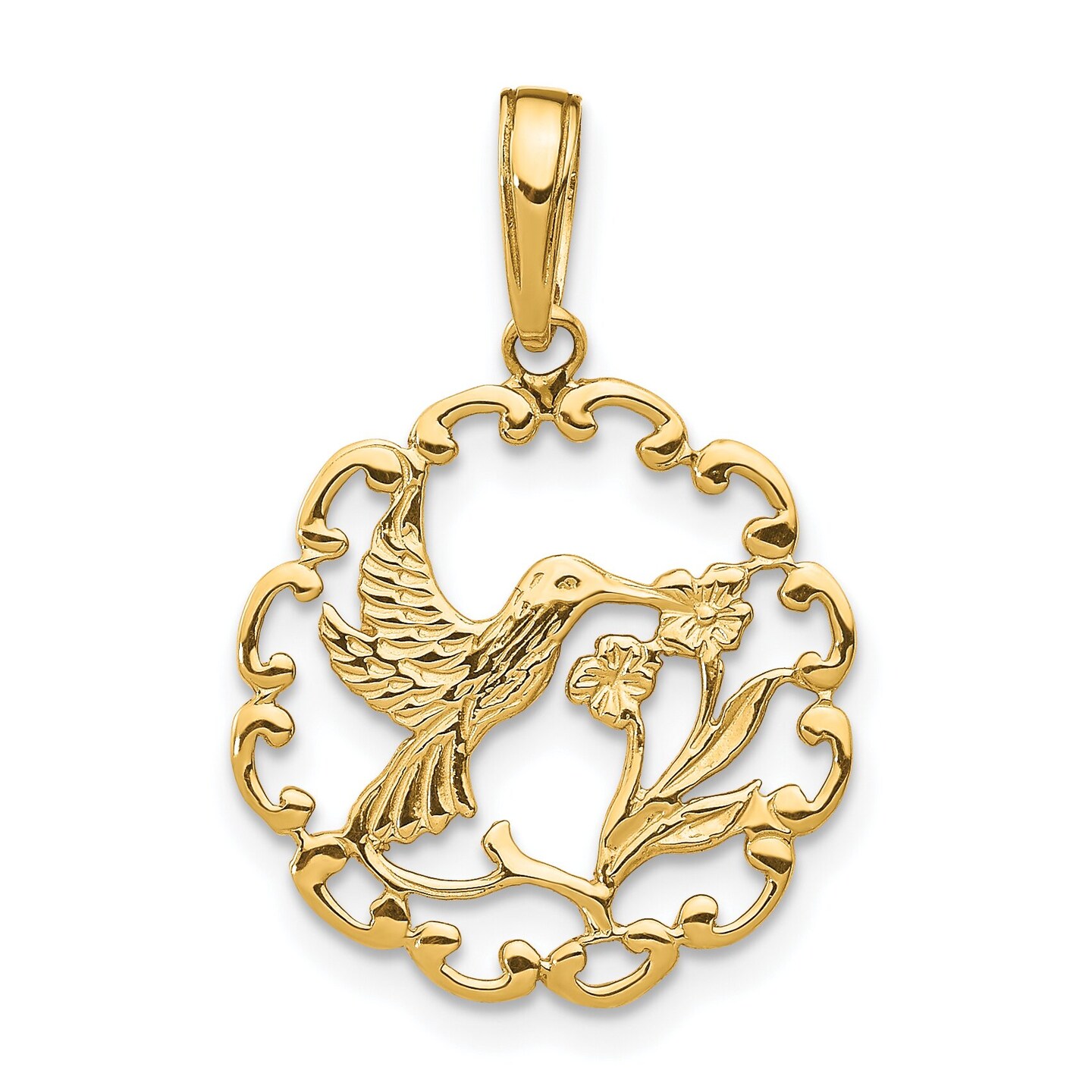 14K Gold Hummingbird Flower In Frame Pendant Charm Jewelry 23 x 16 mm