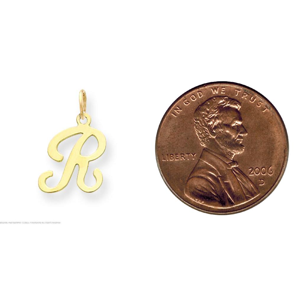 14K Gold Polished Fancy Initial Letter R Charm Pendant Jewerly 20mm x 11mm