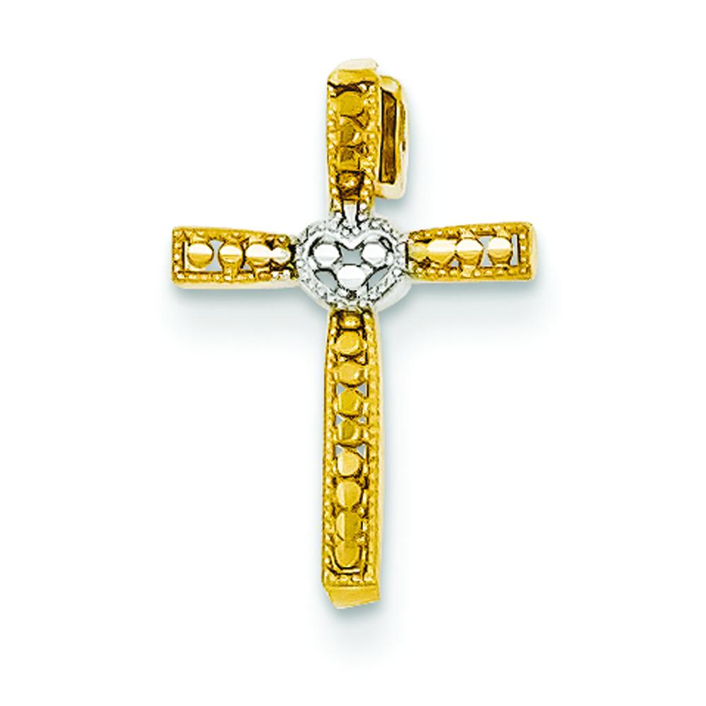 14K Gold Rhodium Diamond Cut Cross Pendant Charm Jewelry 17 x 11mm