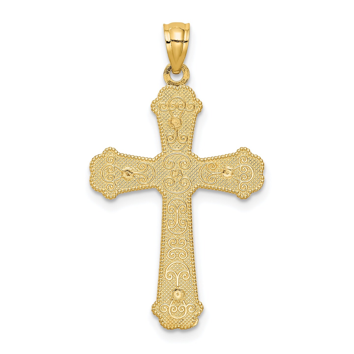 14K Two Tone Gold Hearts Cross Pendant Charm Jewelry 33mm x 19mm