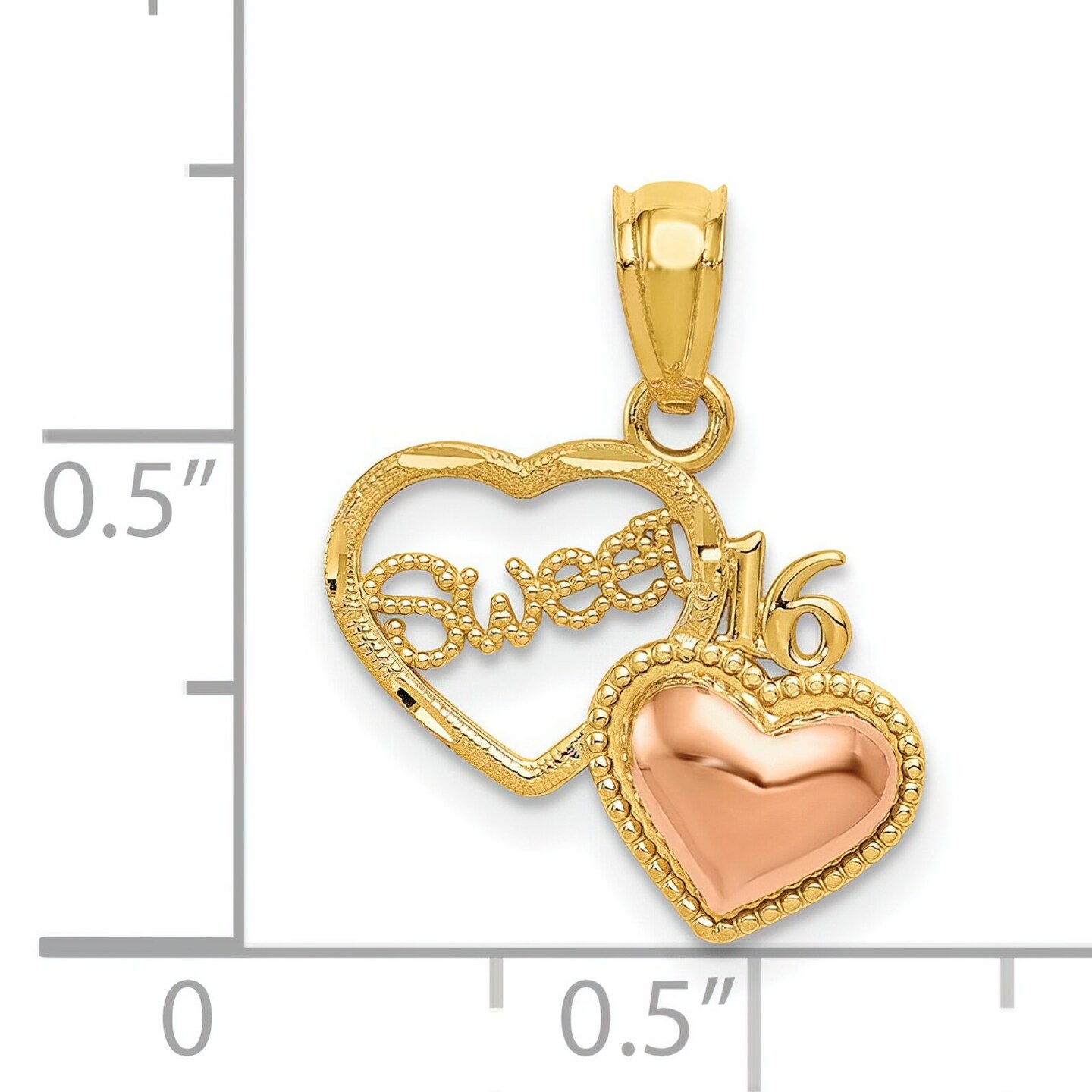 14K Two Tone Gold Sweet 16 Heart Pendant Charm Jewelry 18 x 15 mm