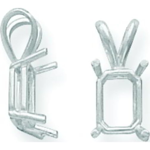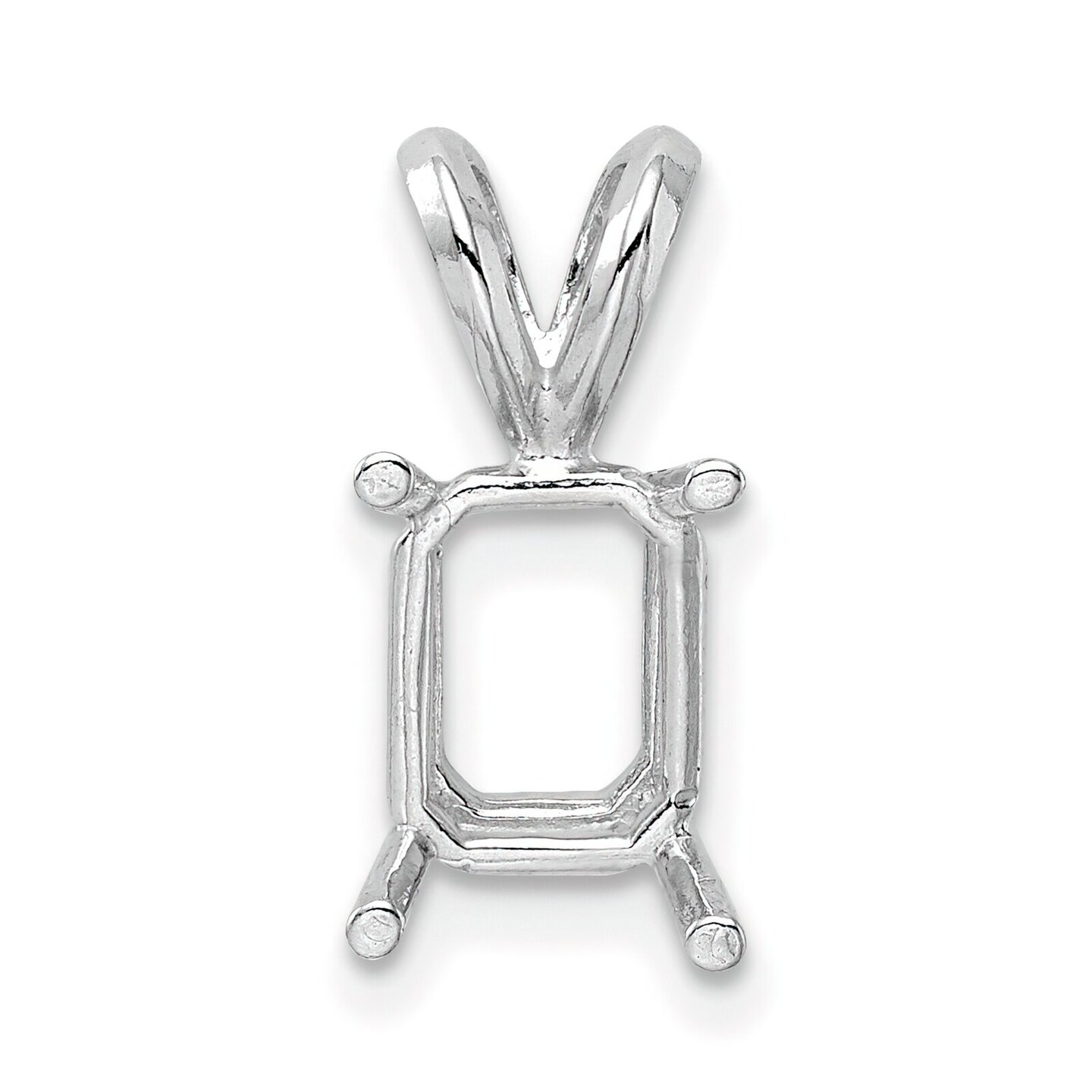 14K White Gold 4 Prong Emerald Cut Pendant Setting 6mm