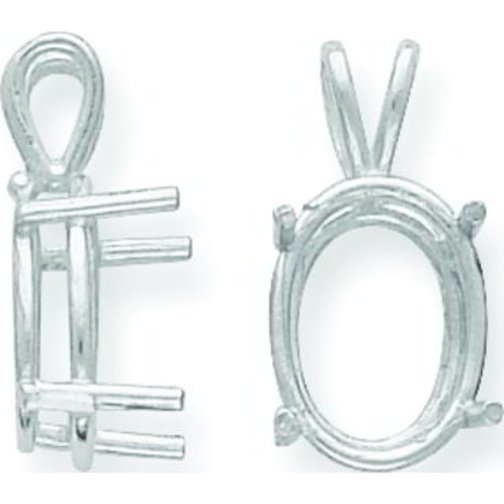 14K White Gold 4 Prong Oval Pendant Setting 10mm