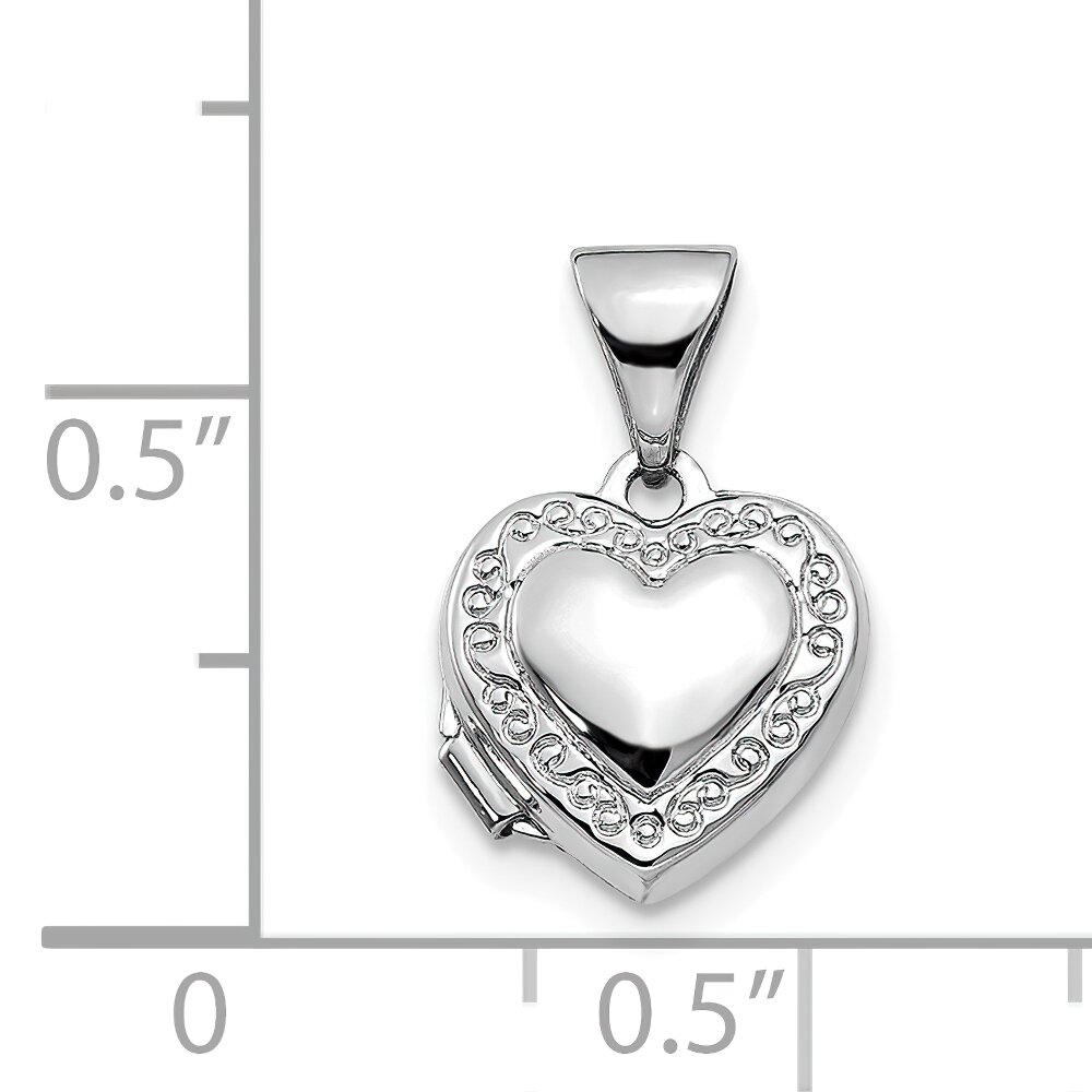 14K White Gold Scrolled Heart Locket Pendant Jewelry 15.8mm x 10.3mm