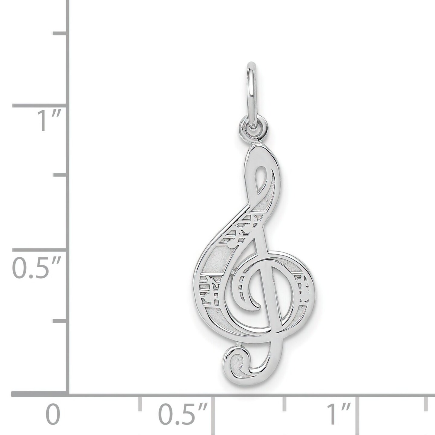 14K White Gold Treble Clef Charm Music Pendant Jewelry 28mm x 10mm