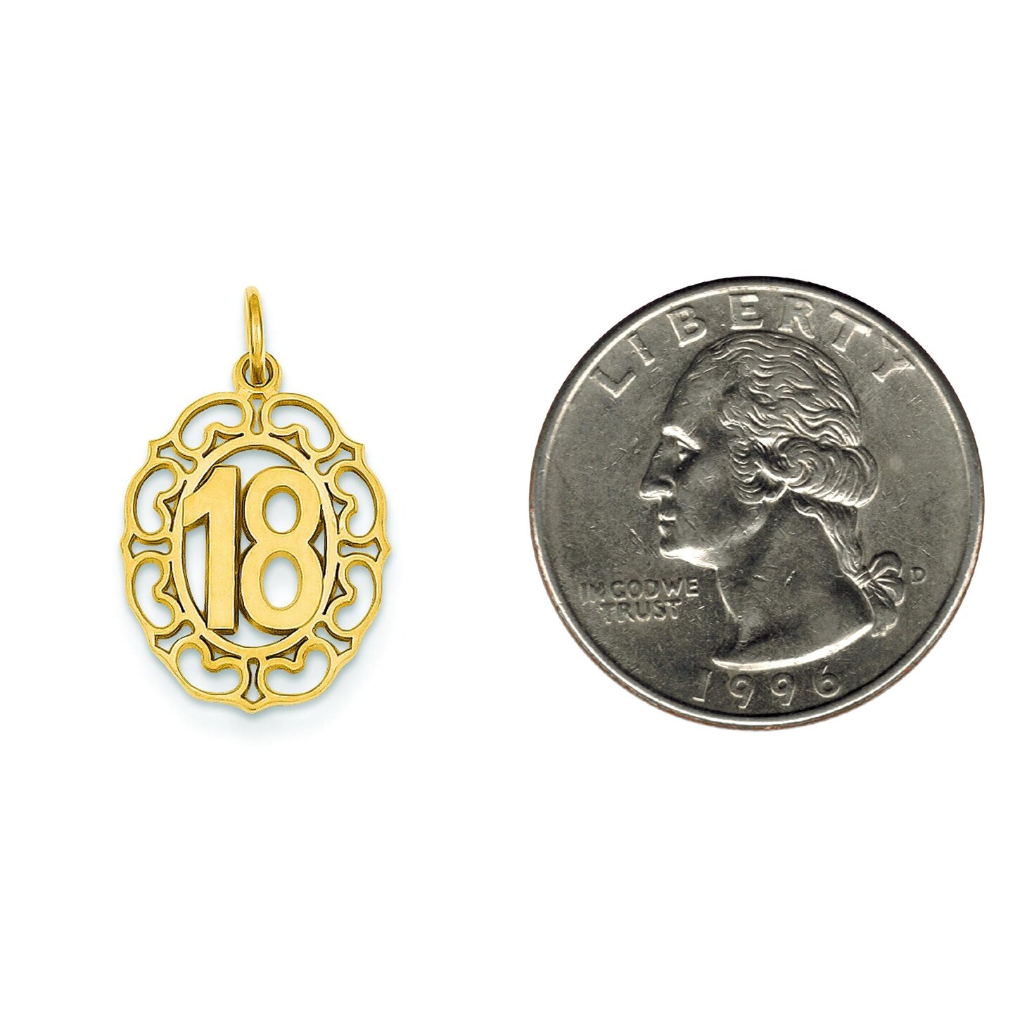 14K Yellow Gold 18 in Oval Charm Birthday Pendant Jewerly 25mm x 14mm