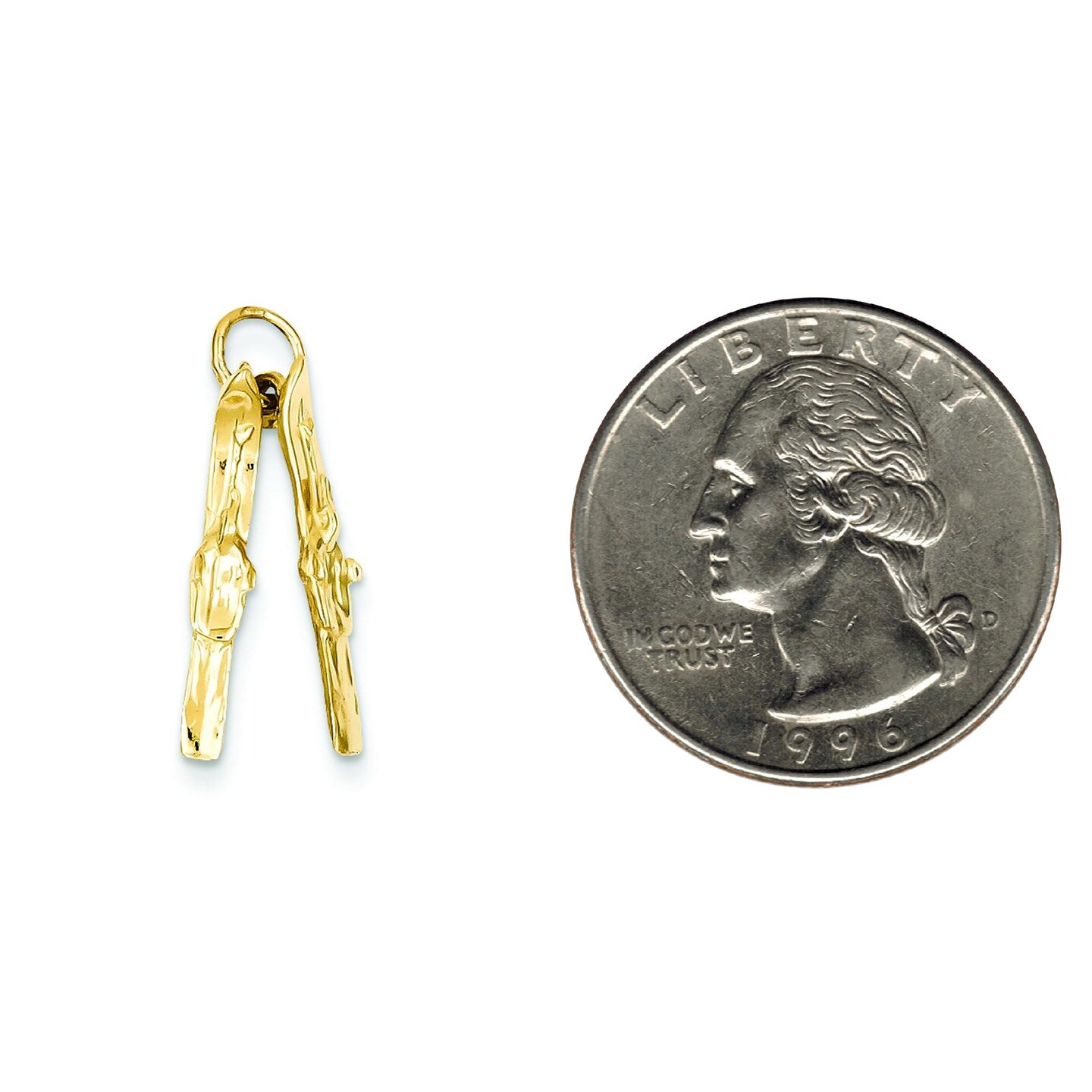 14K Yellow Gold 3D Pair of Skis Charm Skiing Jewelry