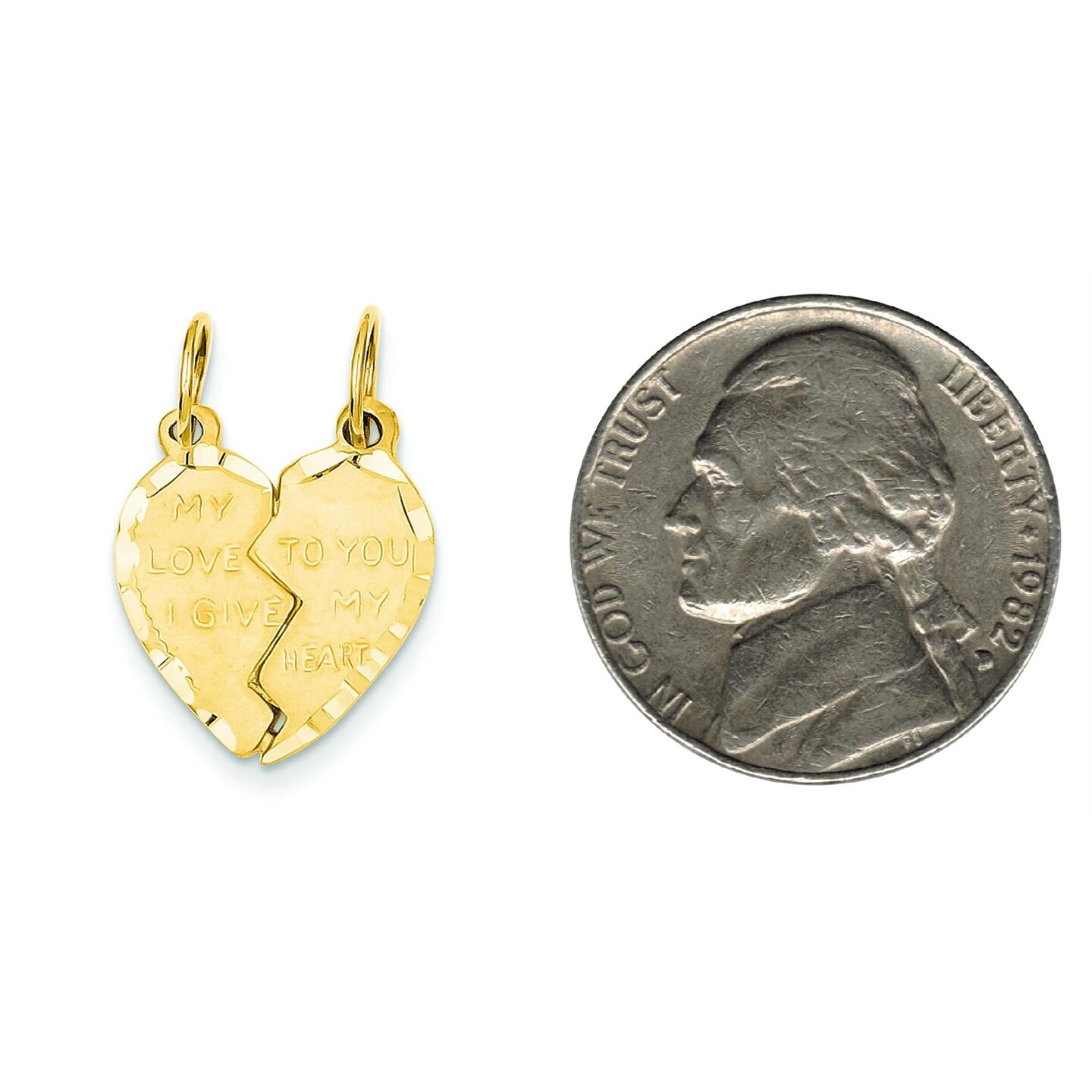 14K Yellow Gold Break Apart Heart Charm Pendant Jewelry 22 X 16mm