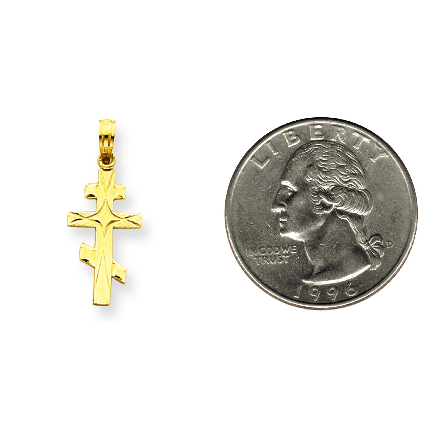 14K Yellow Gold Orthodox Cross Pendant Charm Jewelry 26mm x 11mm