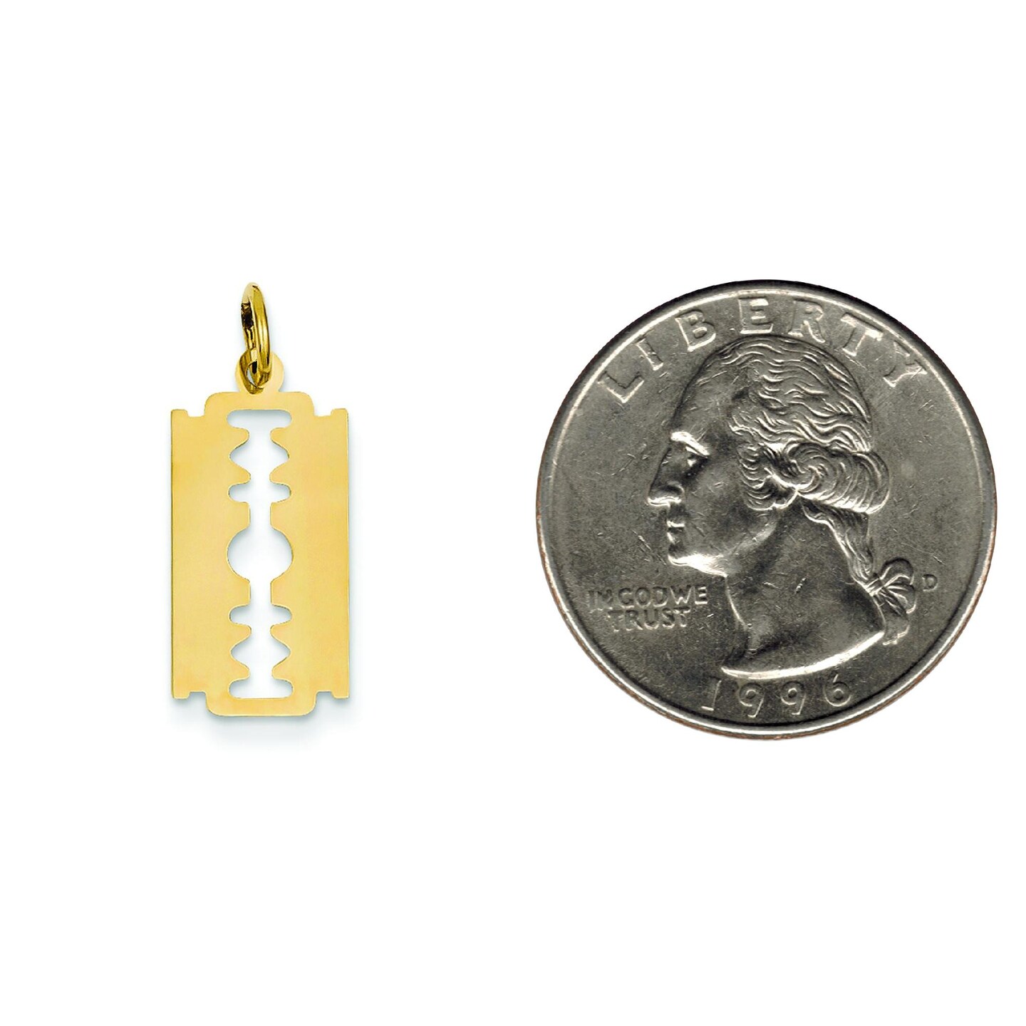 14K Yellow Gold Polished Razor Blade Charm Pendant Jewerly 25mm x 12mm