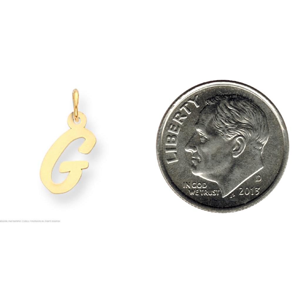 14K Yellow Gold Small Script Initial Letter G Charm Jewerly 17mm x 8mm