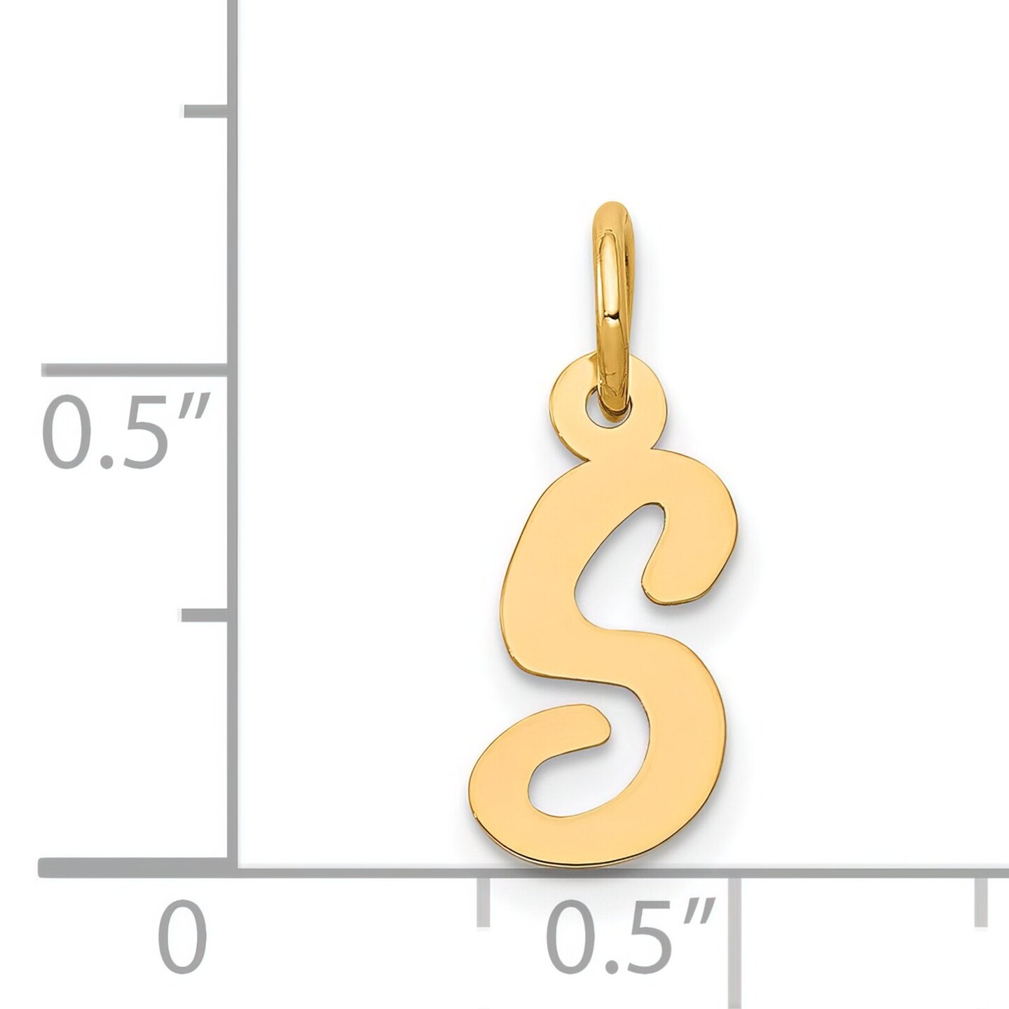 14K Yellow Gold Small Script Initial Letter S Charm Jewerly 17mm x 8mm