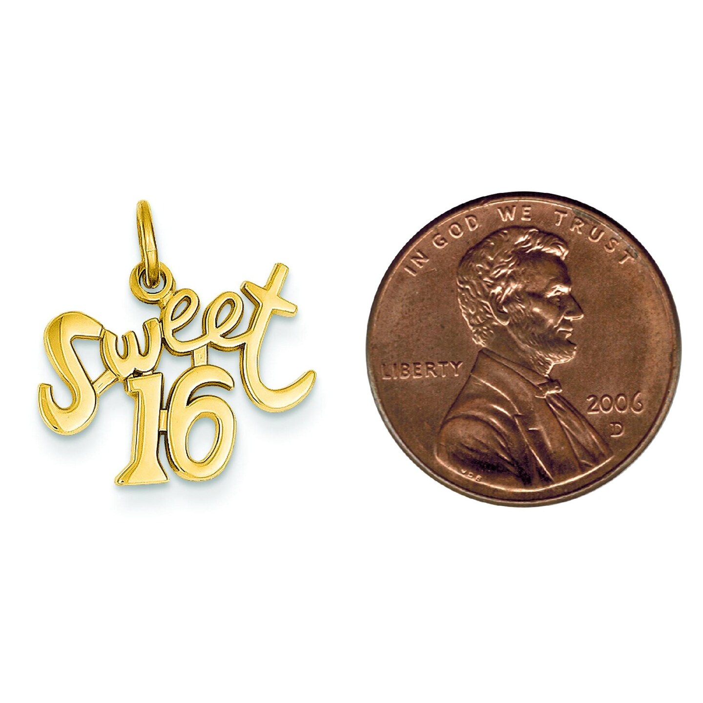 14K Yellow Gold Sweet 16 Charm Birthday Jewelry 17mm x 17mm