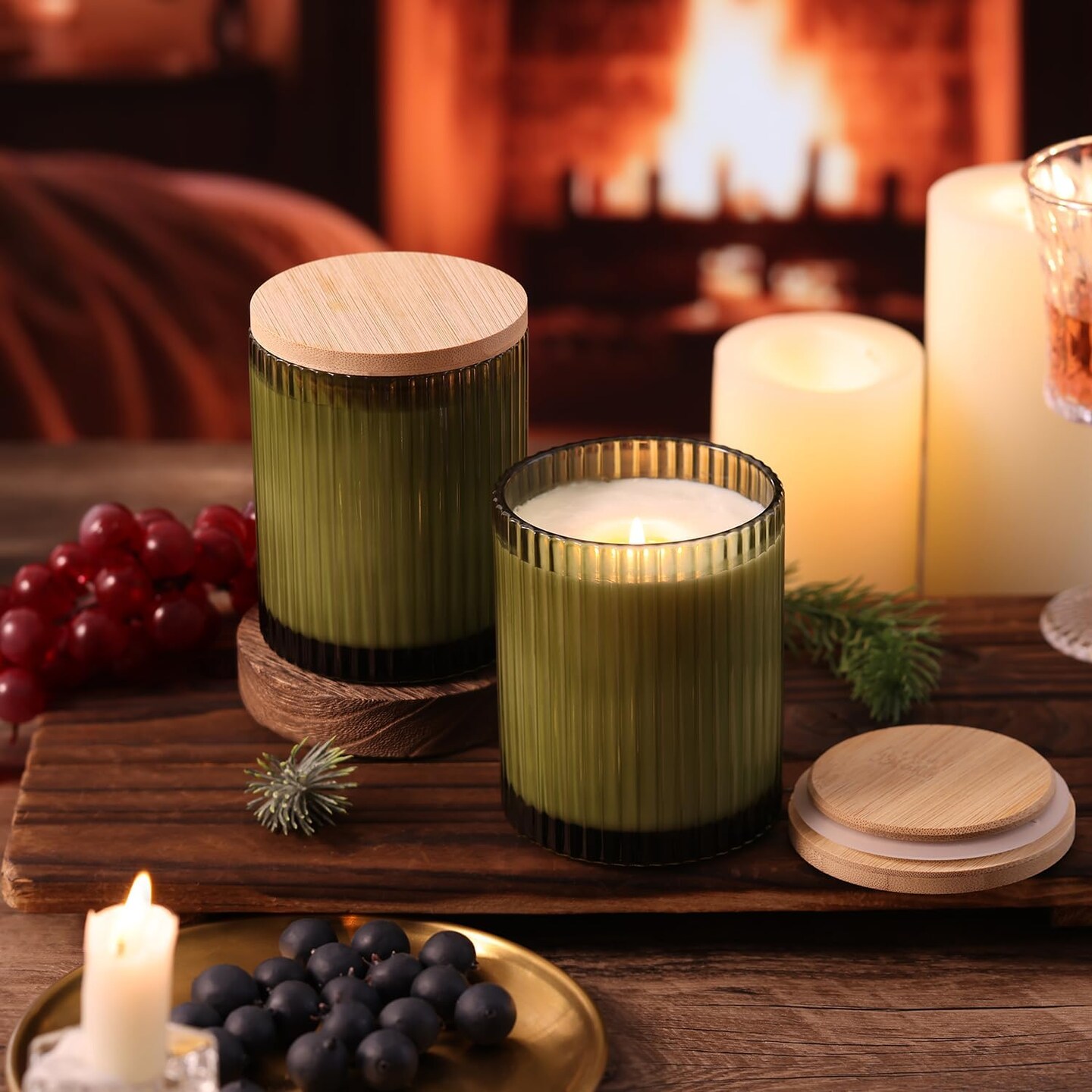 14OZ Olive Green Glass Candle Jars for Making Candles (Green) 3.3"W x 4.1"H