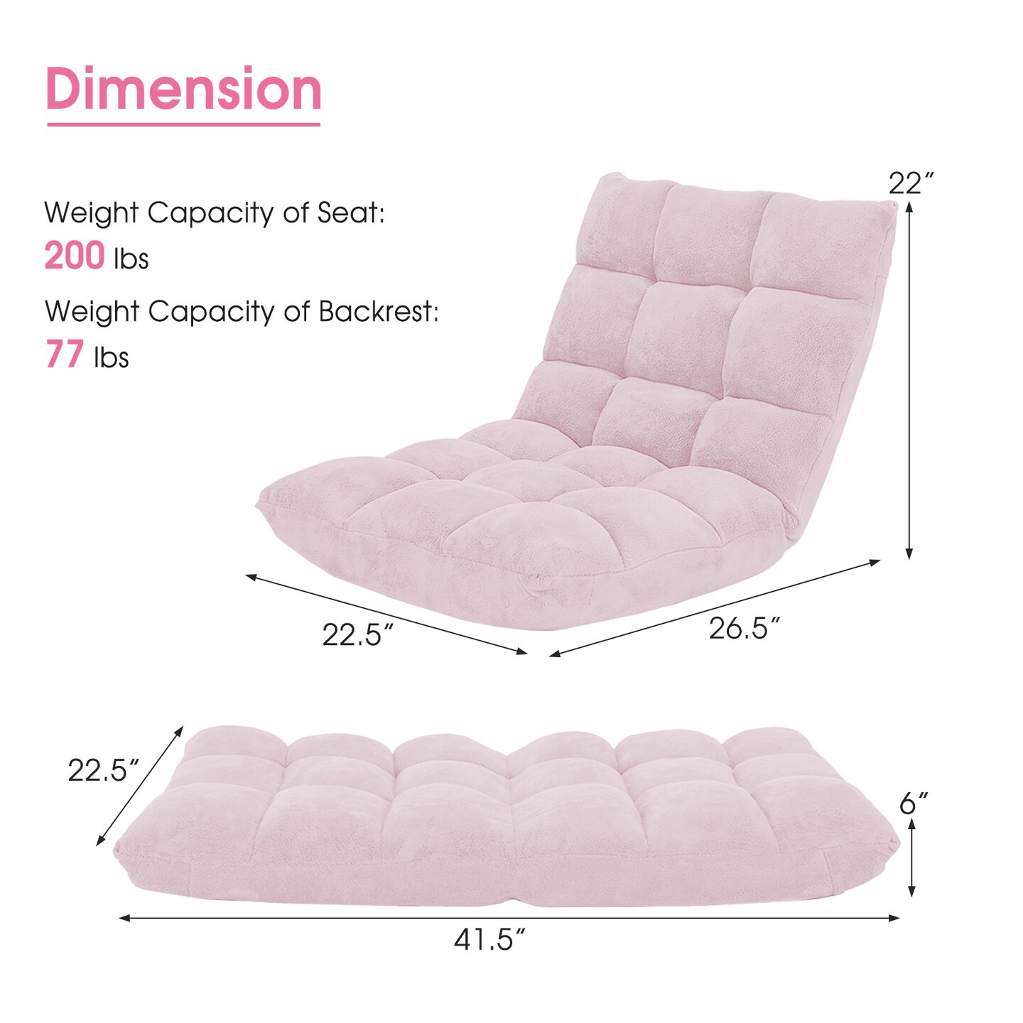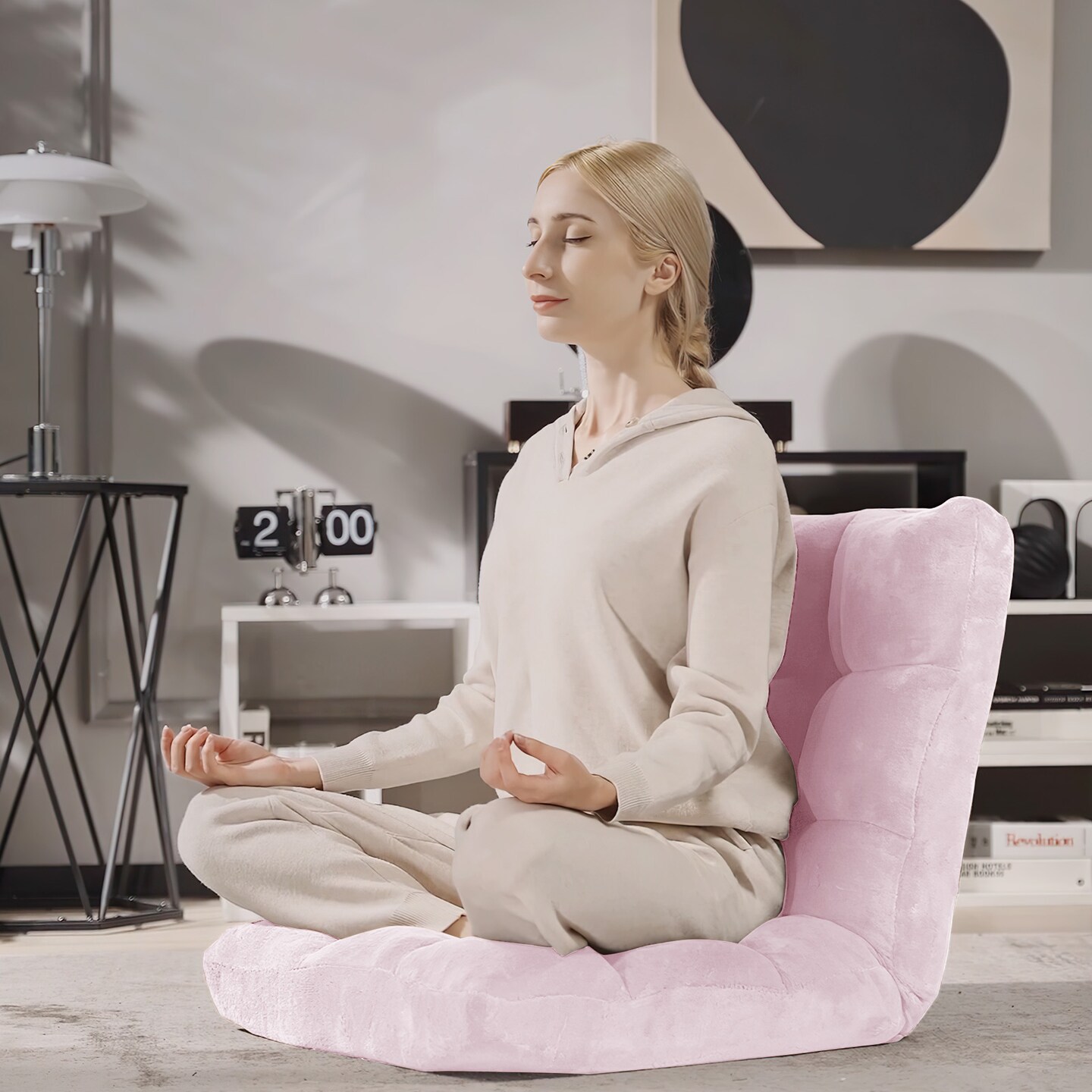 14-Position Adjustable Floor Chair with Soft Coral Velvet and Memory Foam for TV Gaming or Meditation