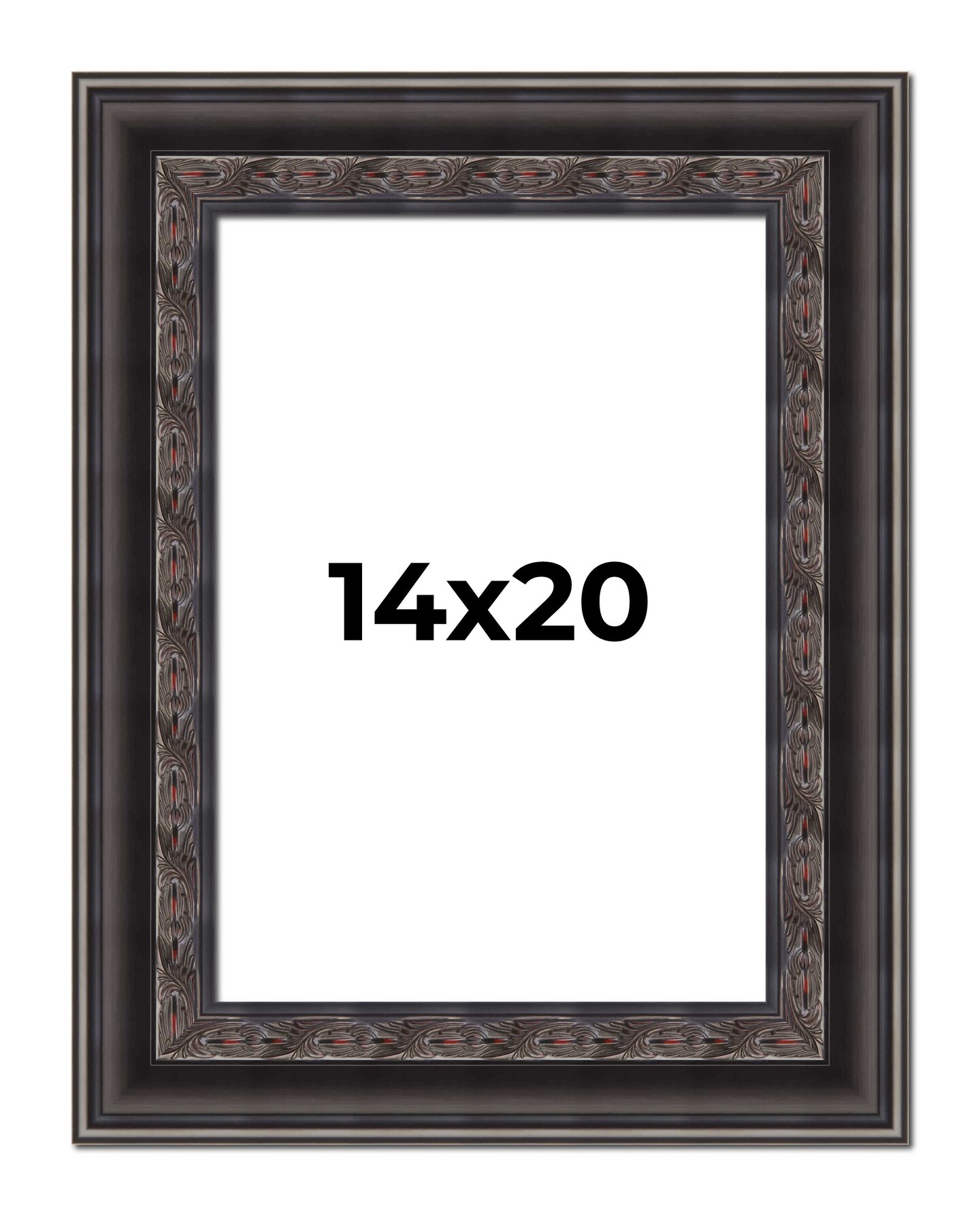 14x20 3.5" Wide Ornate Black Picture Frame - UV Acrylic, Foam Board Backing, Hanging Hardware