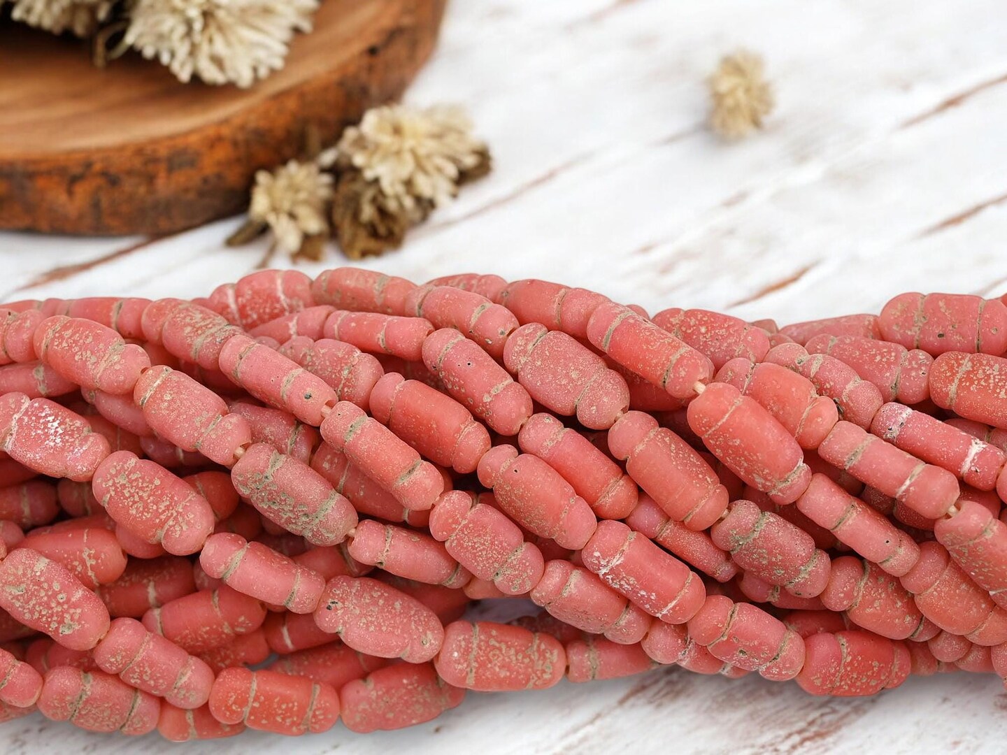 14x8mm Rustic Aged Coral Pink Indonesian Java Glass "Bottle" Beads (18" Strand)