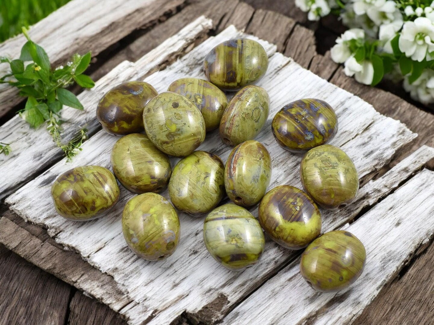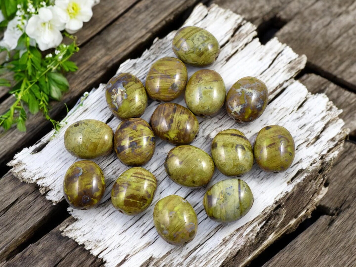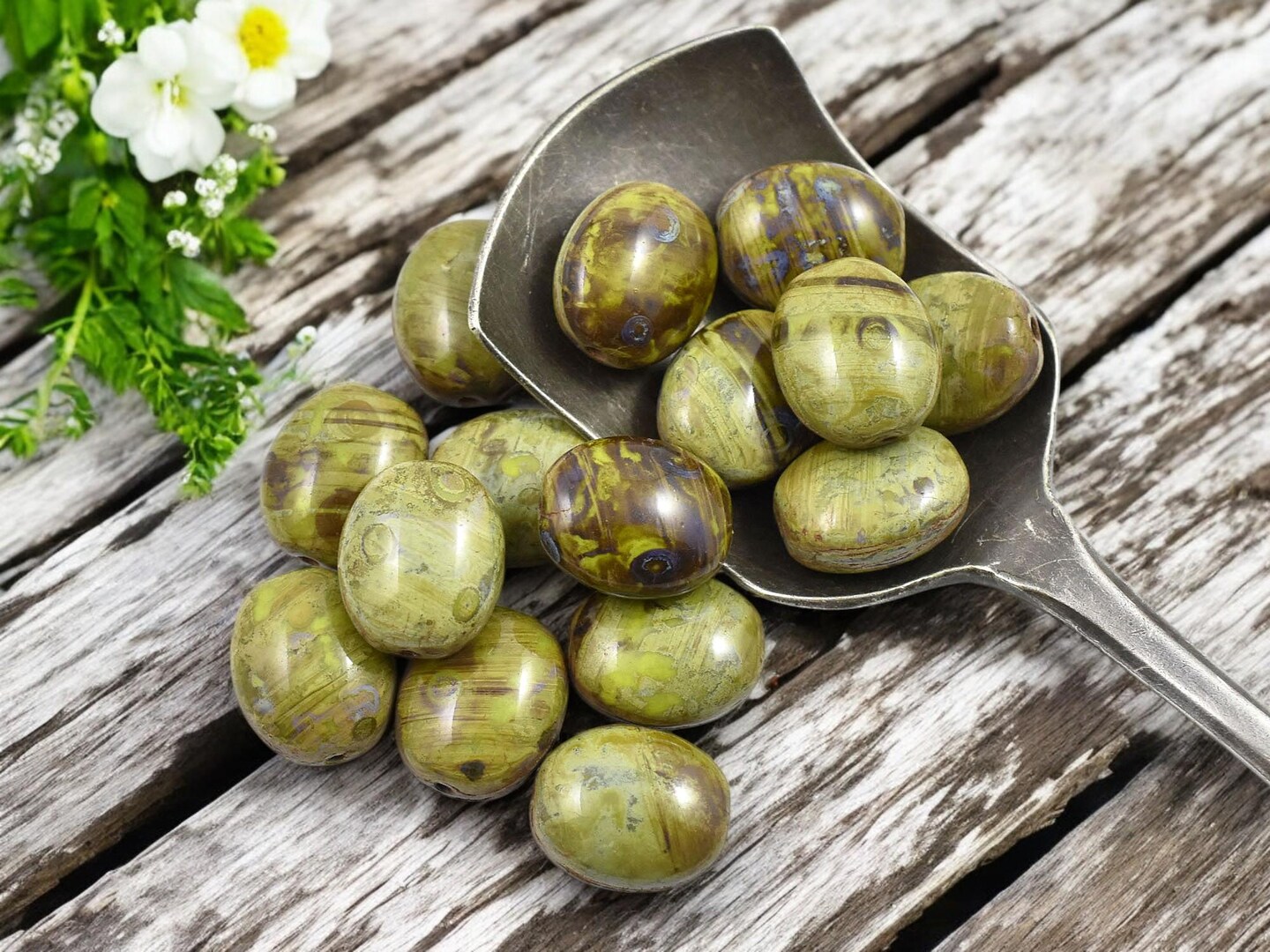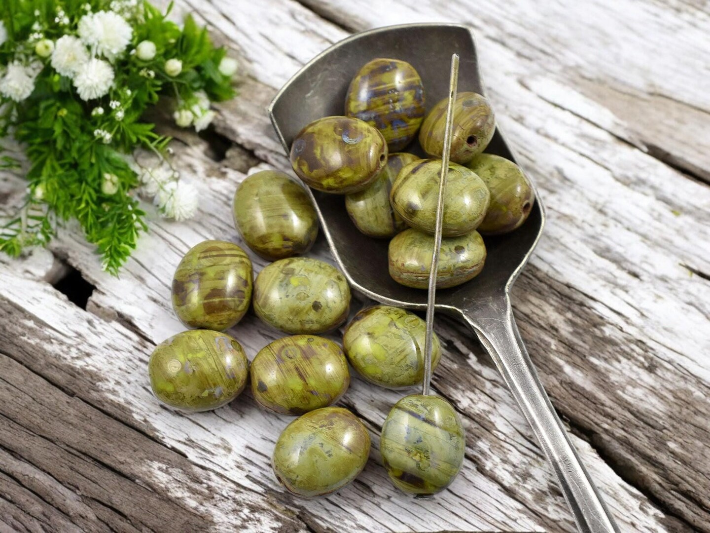 *15* 11x9mm Rustic Green Travertine Oval Lentil Beads