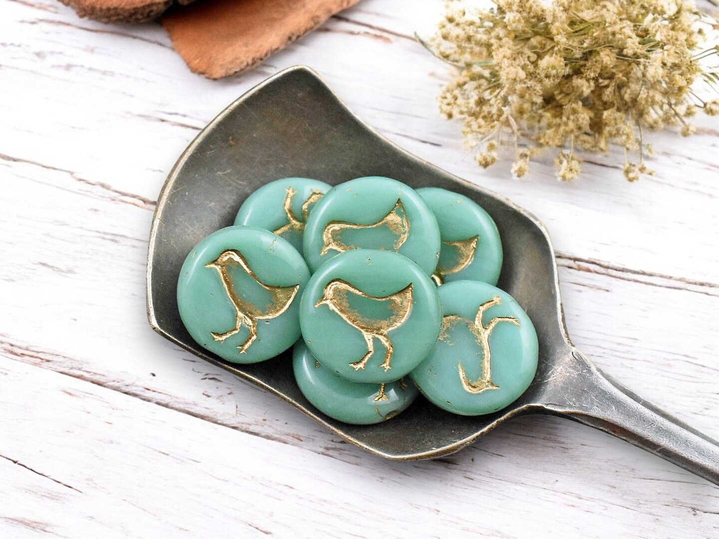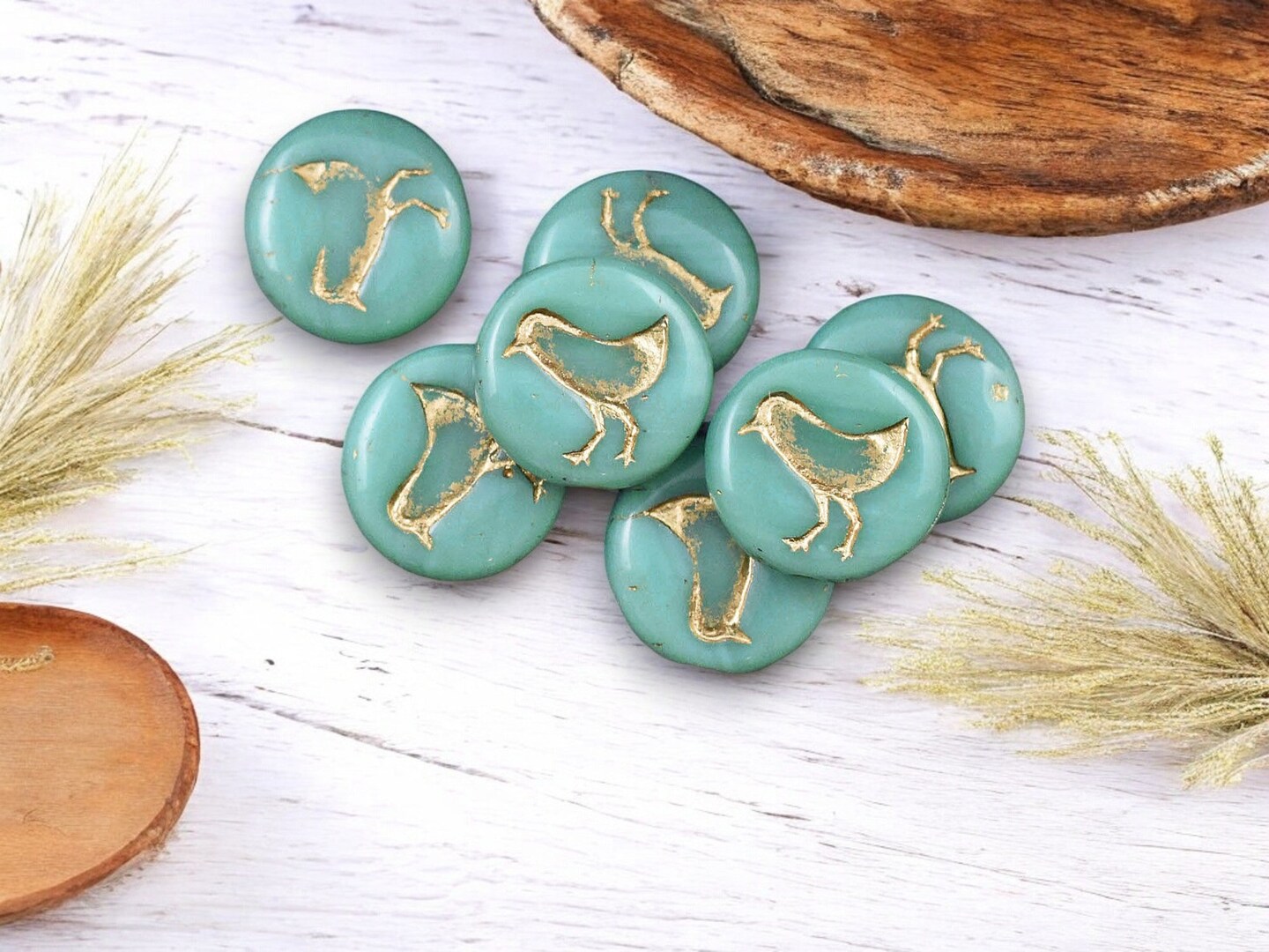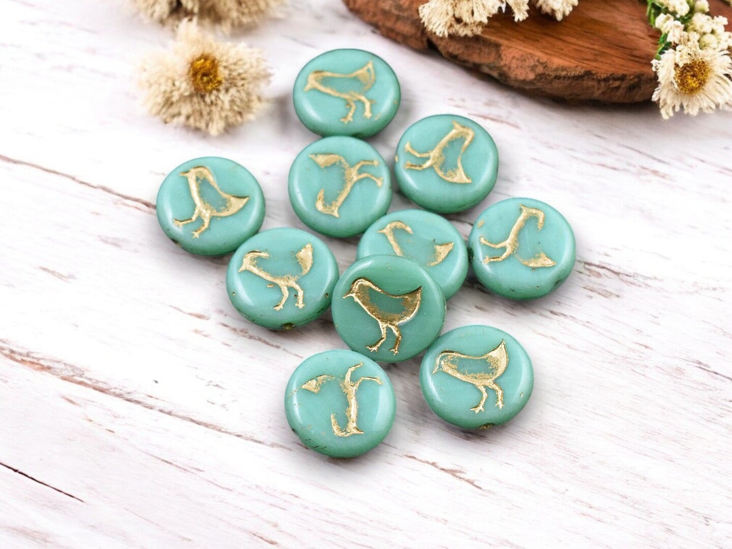 *15* 12mm Gold Washed Opaque Turquoise Bird Coin Beads