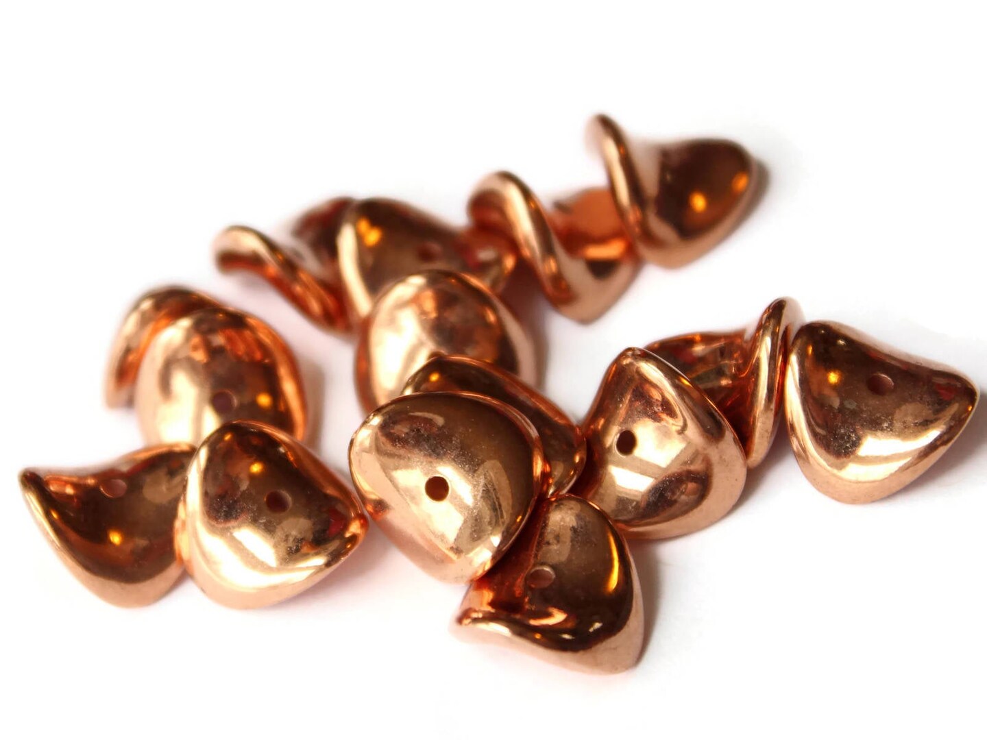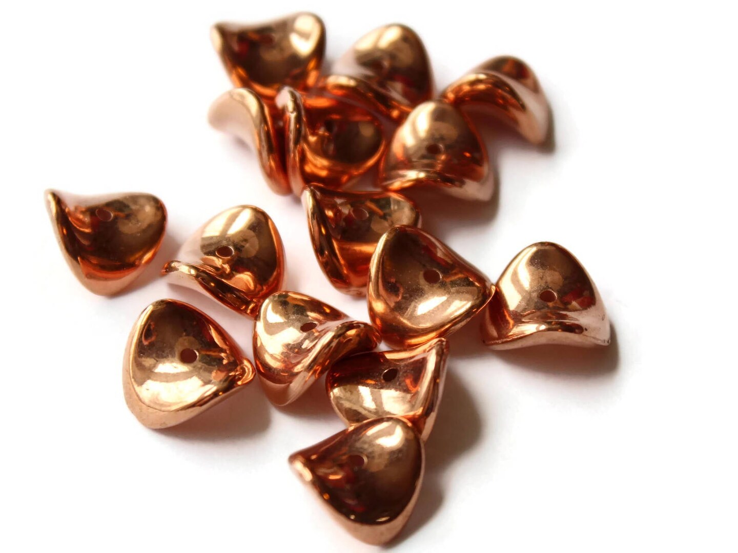 15 13mm Red Copper Saddle Beads - Vintage Copper Plated Plastic Potato Chip Beads