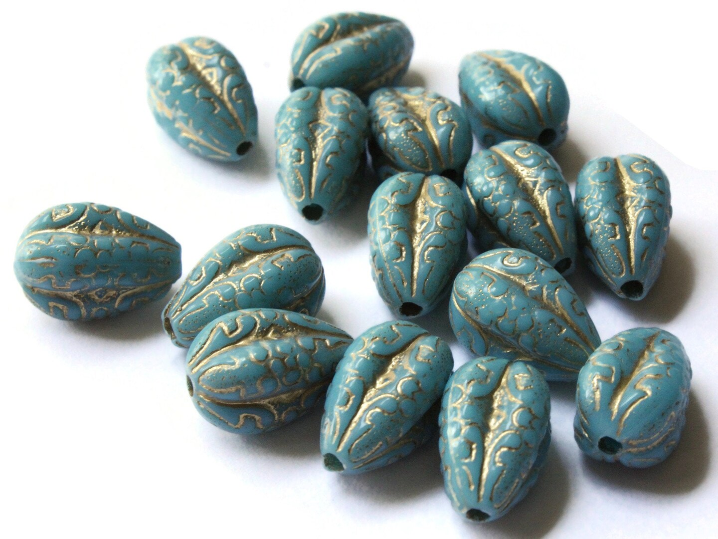 15 18.5mm Sky Blue Fluted Teardrop Beads Gold Trim Plastic Beads