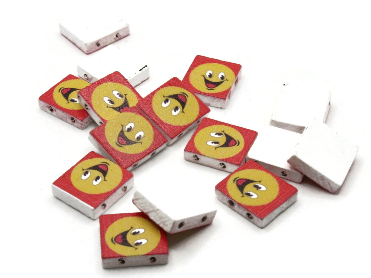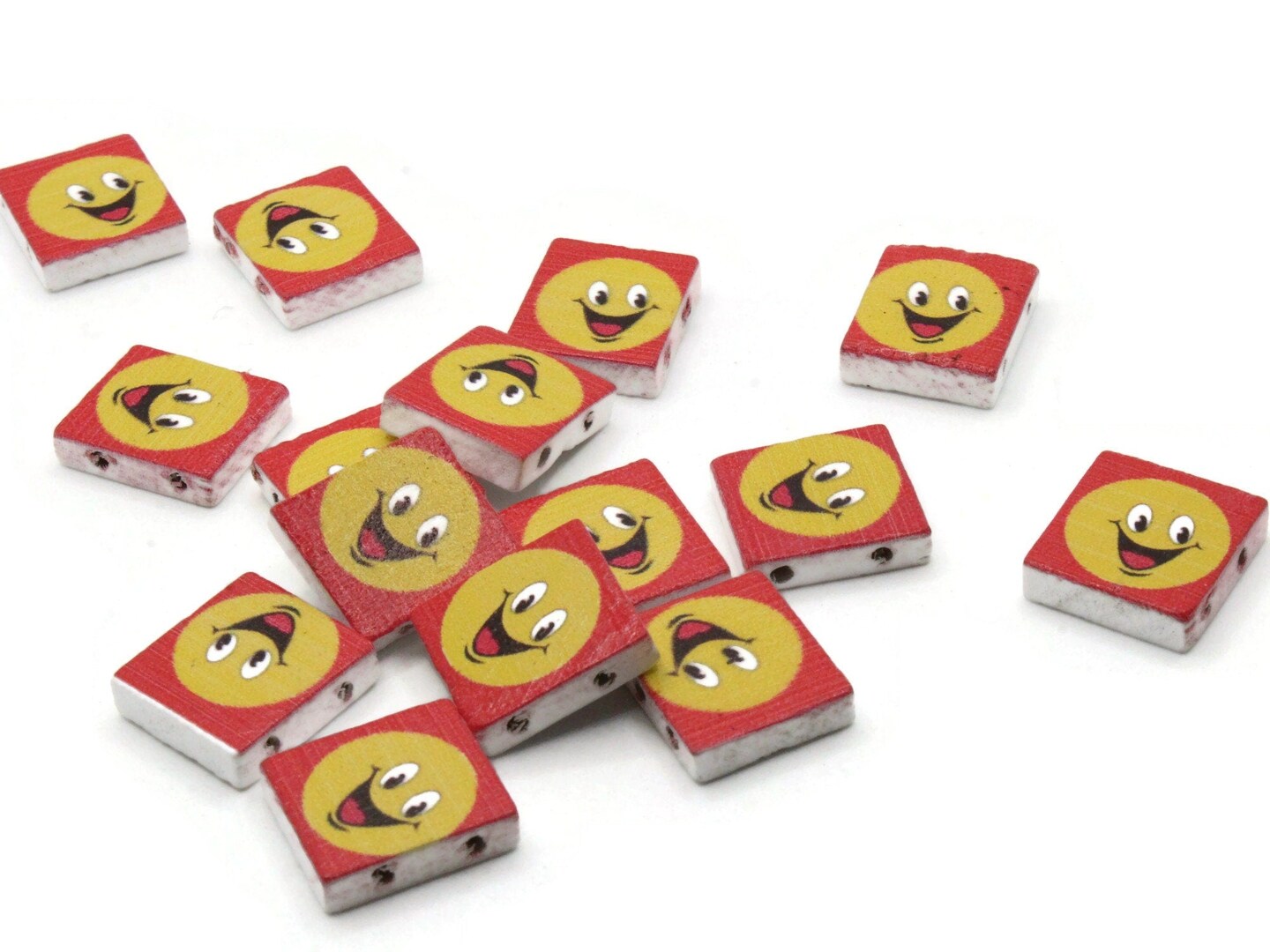 15 20mm Red and Yellow Beads Wooden Rectangle Happy Face Beads - Two Hole Emoji Beads