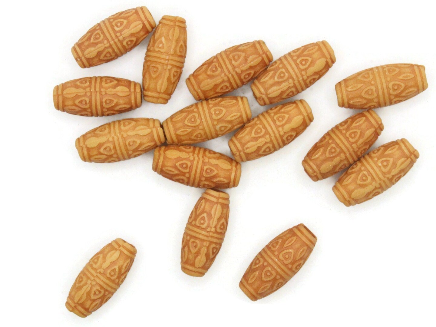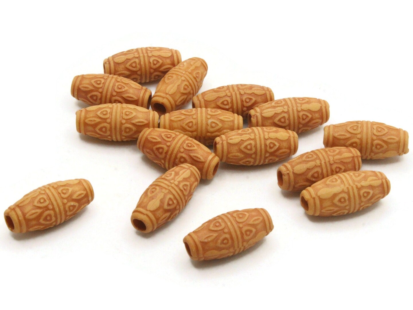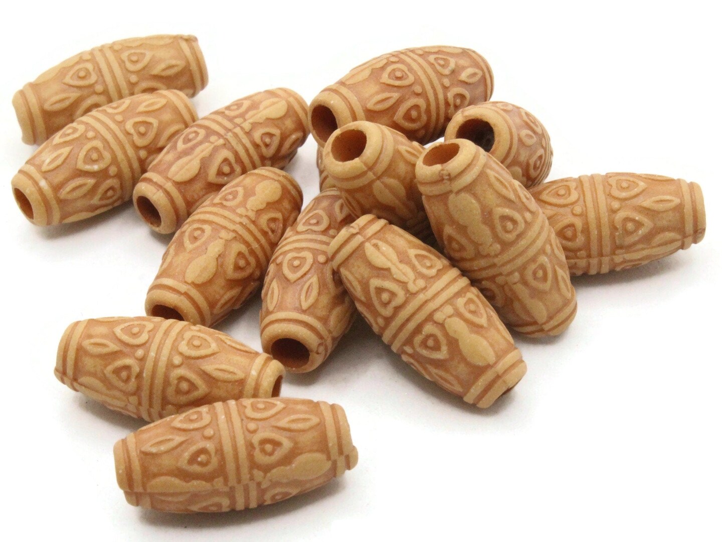 15 22mm Brown Patterned Tube Plastic Large Hole Beads