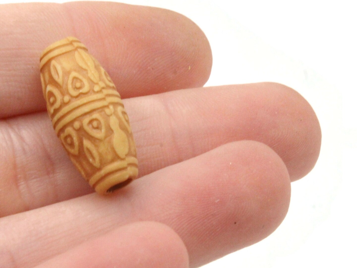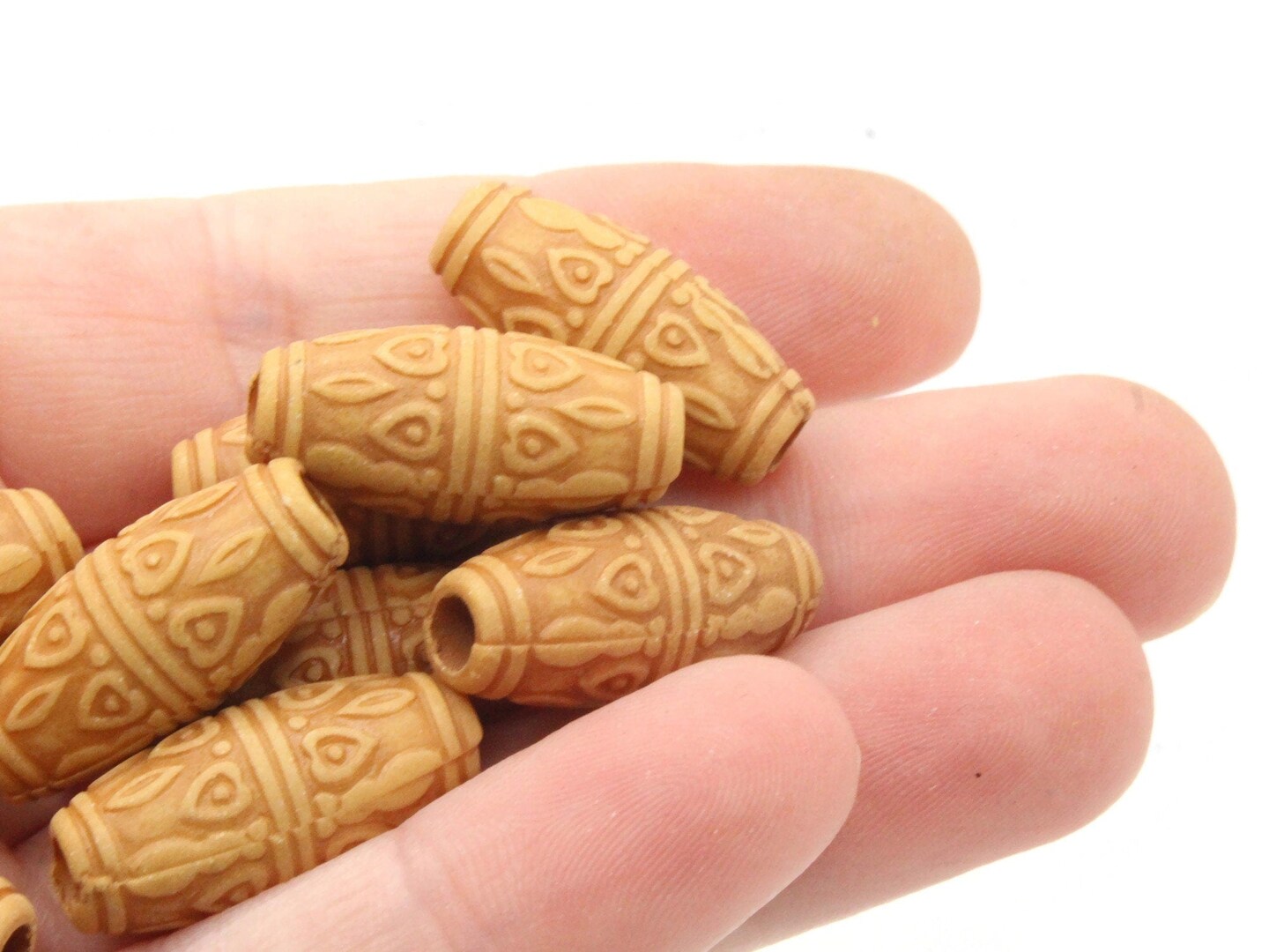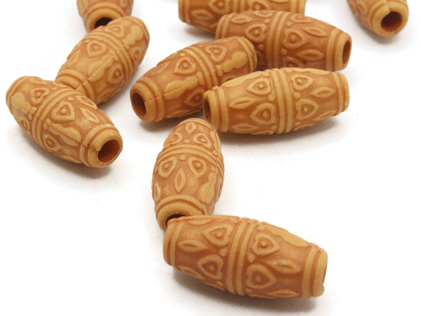15 22mm Brown Patterned Tube Plastic Large Hole Beads