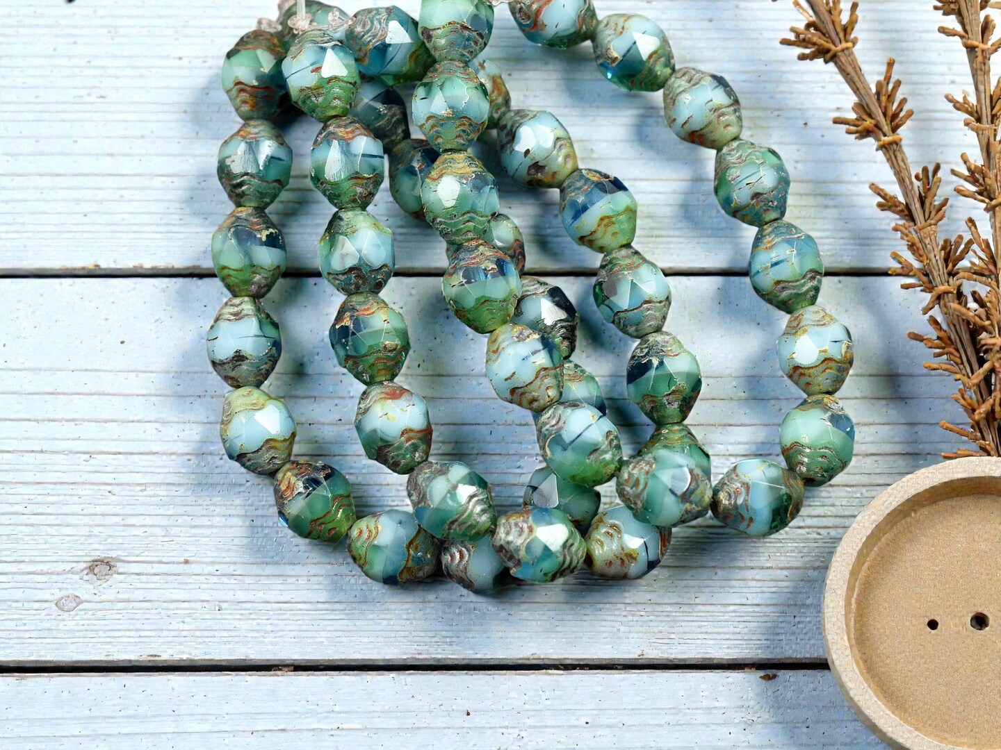*15* 6x8mm Blended Turquoise Aqua Picasso Oval Cathedral Beads
